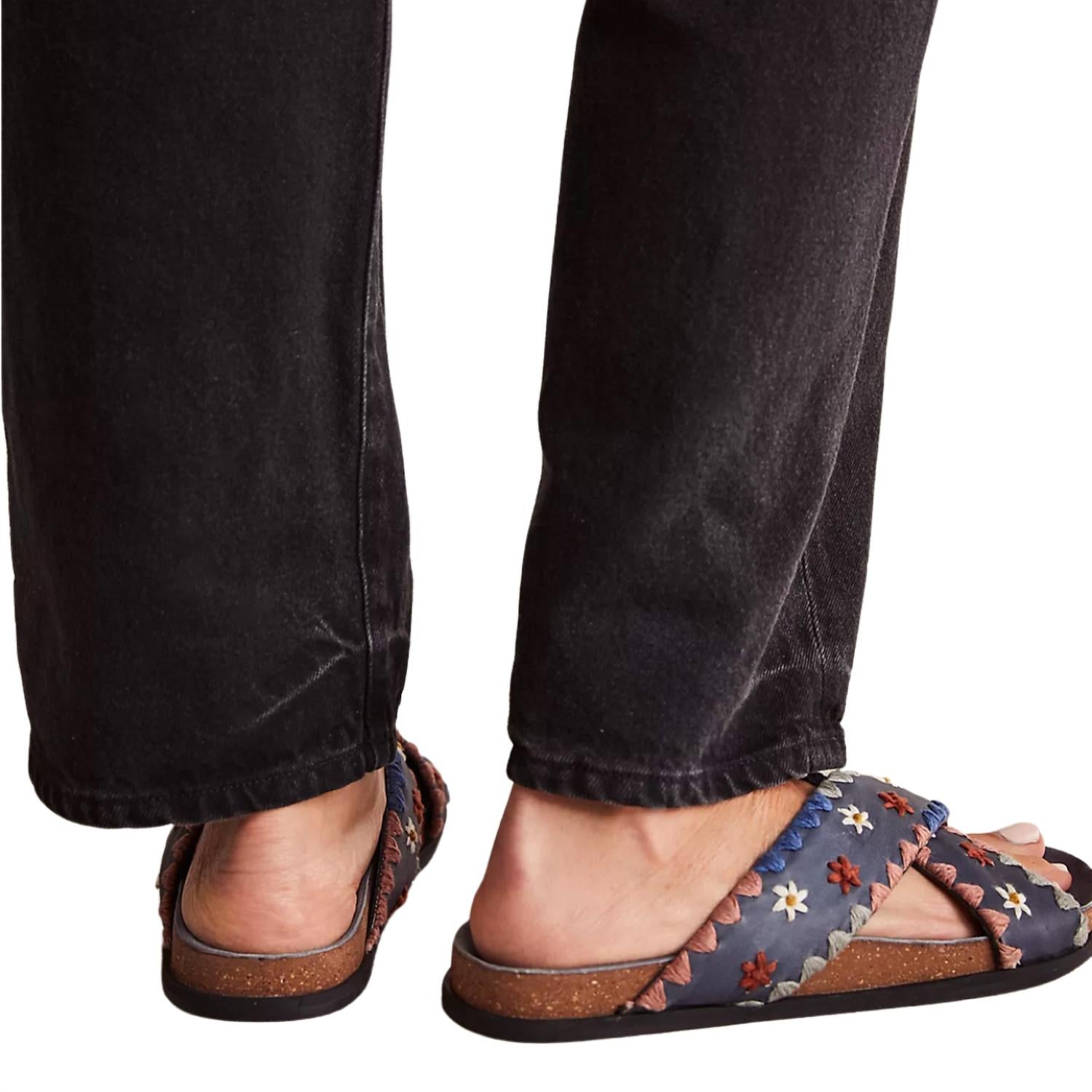 Slide into these so chic and eye-catching sandals featured in a slip-on style and open-toe design with crisscross straps, stunning embroidered details, and cozy cork foot bed. This sweet sister has a slip-on style, cushioned foot bed, and a durable rubber outsole.