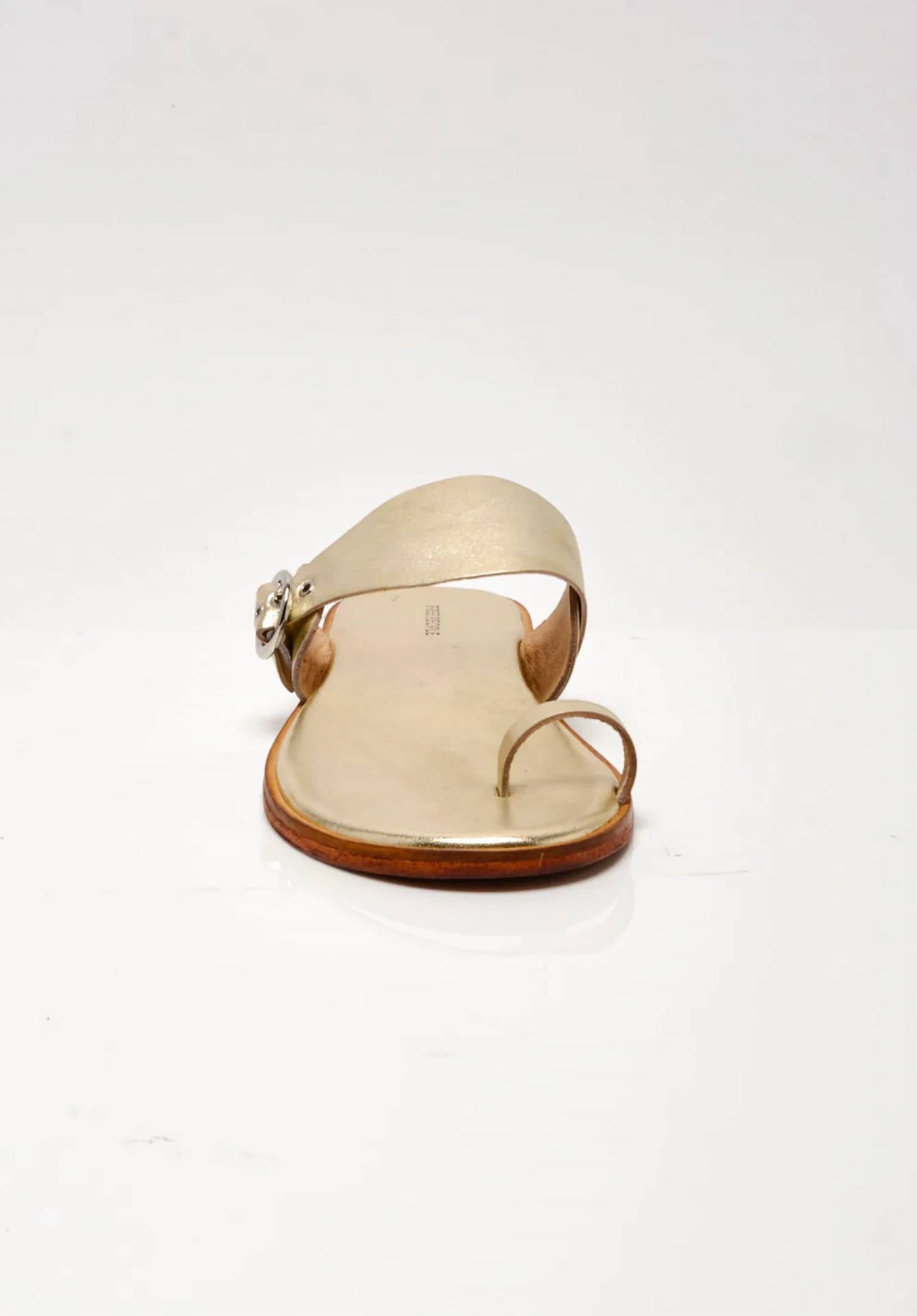Seamless blend of comfort and style, ideal for summer days. Boast leather uppers, a simple toe loop, and a chunky vamp strap, adding a fashionable twist to a classic design. Slip-on style and backless construction offer ease. Adjustable buckle closure ensures a secure fit. Crafted with a flat light stacked heel and round open toe.