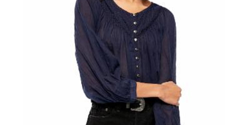 Free People Women's Cool Meadow Peasant Top Large Nwt Navy Size Large