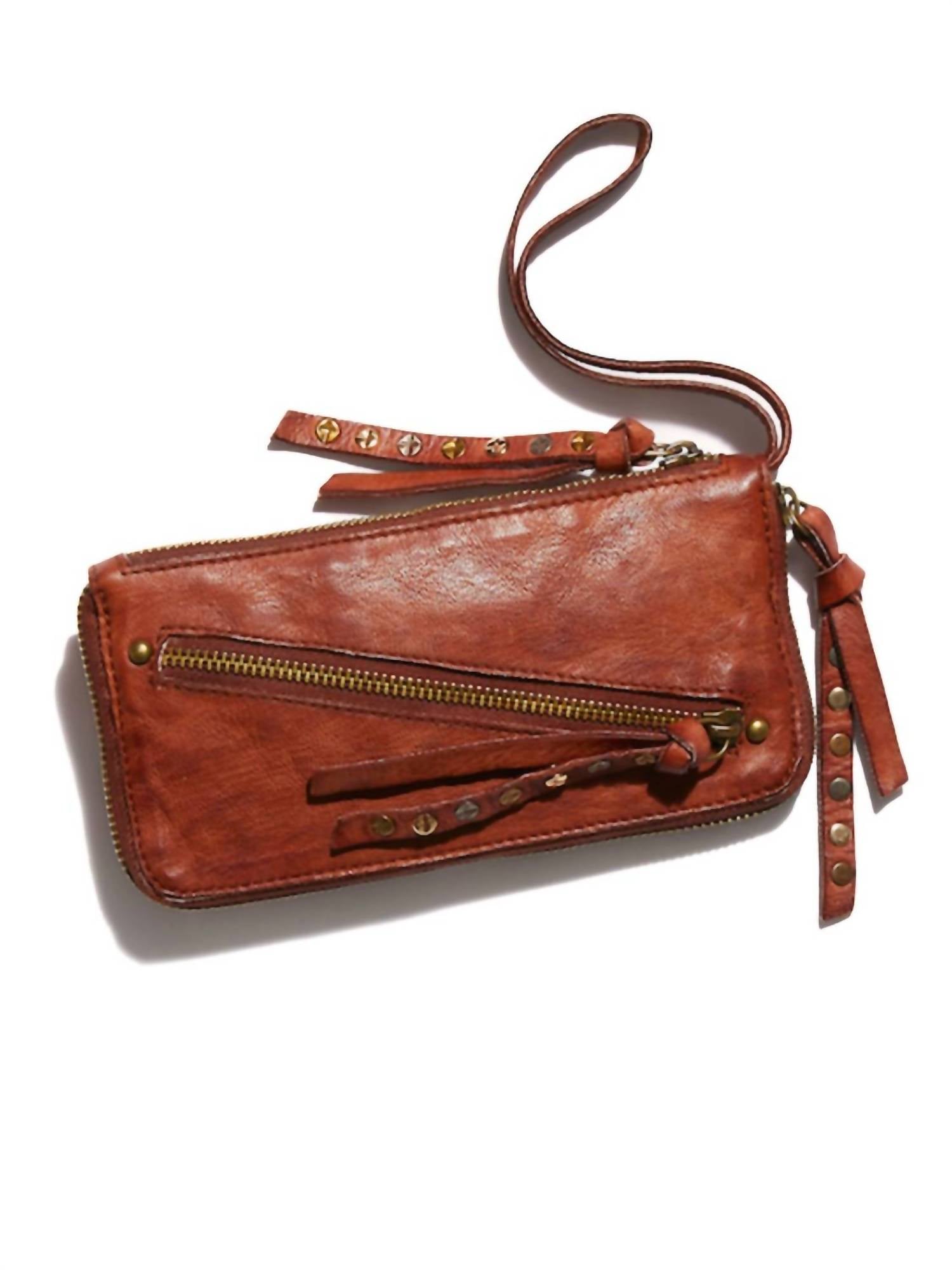 This Women’s Distressed Wallet features durable leather with distressed detailing, ample card slots, pockets, and a secure zipper closure. Includes a handy wristband.