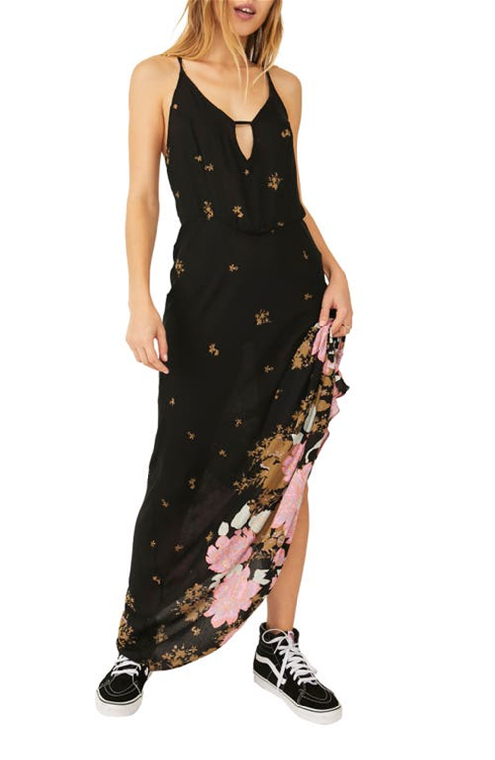 Free People Women's Get To You Floral Maxi Sundress Black Size X-Small