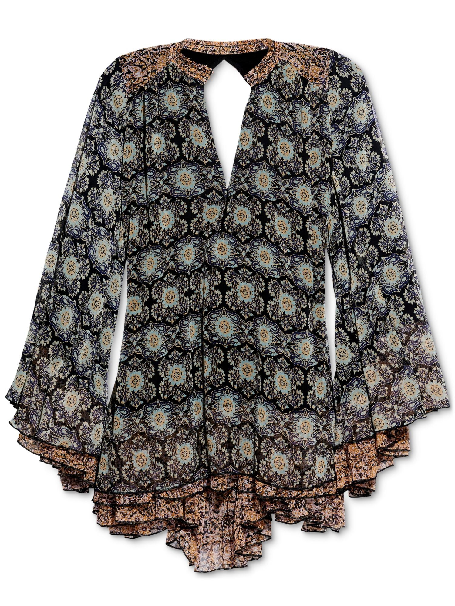 Free People Women's Ikat Long Sleeve Tunic Top Black Size Small