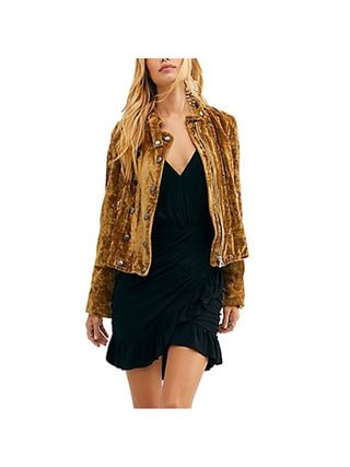 Free People Women's Printed Short Sleeve Off Shoulder Top Yellow Size X-Small