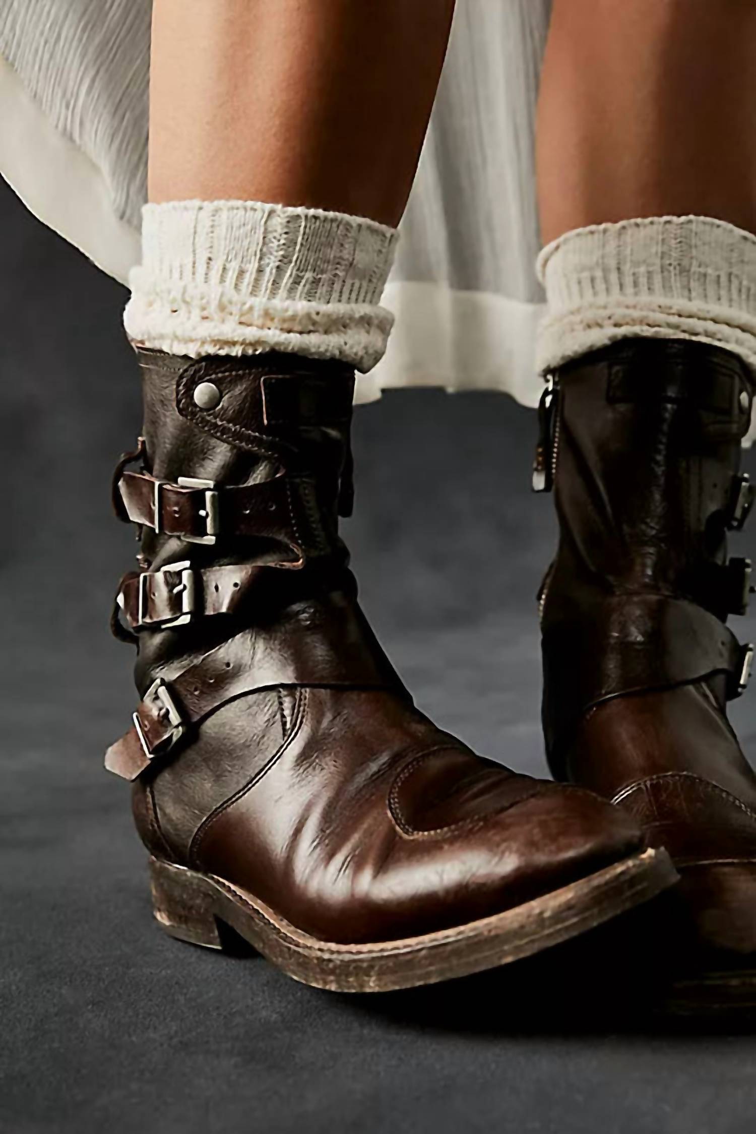 You don’t need a motorcycle to rock this edgy pair; made in Portugal from luxe leather materials, these rugged ankle boots feature effortlessly cool buckle straps and a gear-change patch for a pair built on authenticity. Features: Mid-calf length, genuine moto boot inspired construction, vintage tumbled glossy leather, We The Free vintage-washed sole with nailhead branding detail, patina buckle and snap details, inner zipper closure, seamed gear shift patch, pull loops, round pointed toe, slight heel. Why We <3 It: All leather in these luxe boots is from the Leather Working Group, certified for responsible tanning processes. What’s Care FP? This product was consciously made to reduce our footprint and supports our mission to be a little bit better every day. We The Free: Heritage inspired and lived-in staples. We The Free is an in-house label. Care/Import: Made in Portugal. Contents: Leather, Base Metal