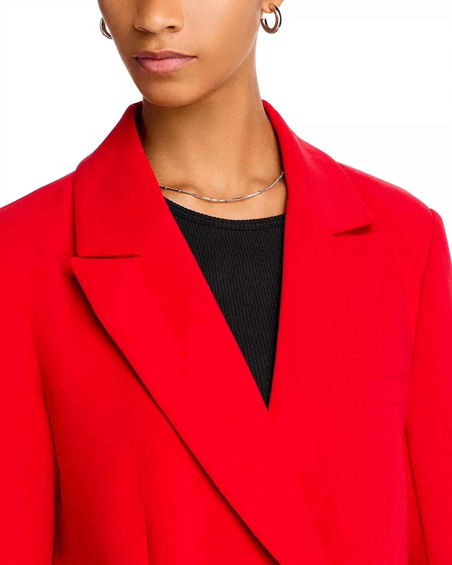 A jacket so versatile you can literally wear it with anything. Elevate your wardrobe with the FRENCH CONNECTION Azra Twill Jacket, a stunning piece in bold red designed for women. Featuring long sleeves with three-button cuffs, this jacket showcases a peak lapel and double-breasted button closure for a chic, tailored look. Crafted from a blend of 75% polyester, 19% viscose, and 6% elastane, it is imported and designed for a slim fit with convenient flap hip pockets. Care: Machine washable for ease of maintenance.