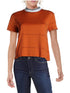 French Connection Women's Jersey Textured Ribbed Ladder Stitch Short Sleeve Crew Neck Crop Top Orange Size Large