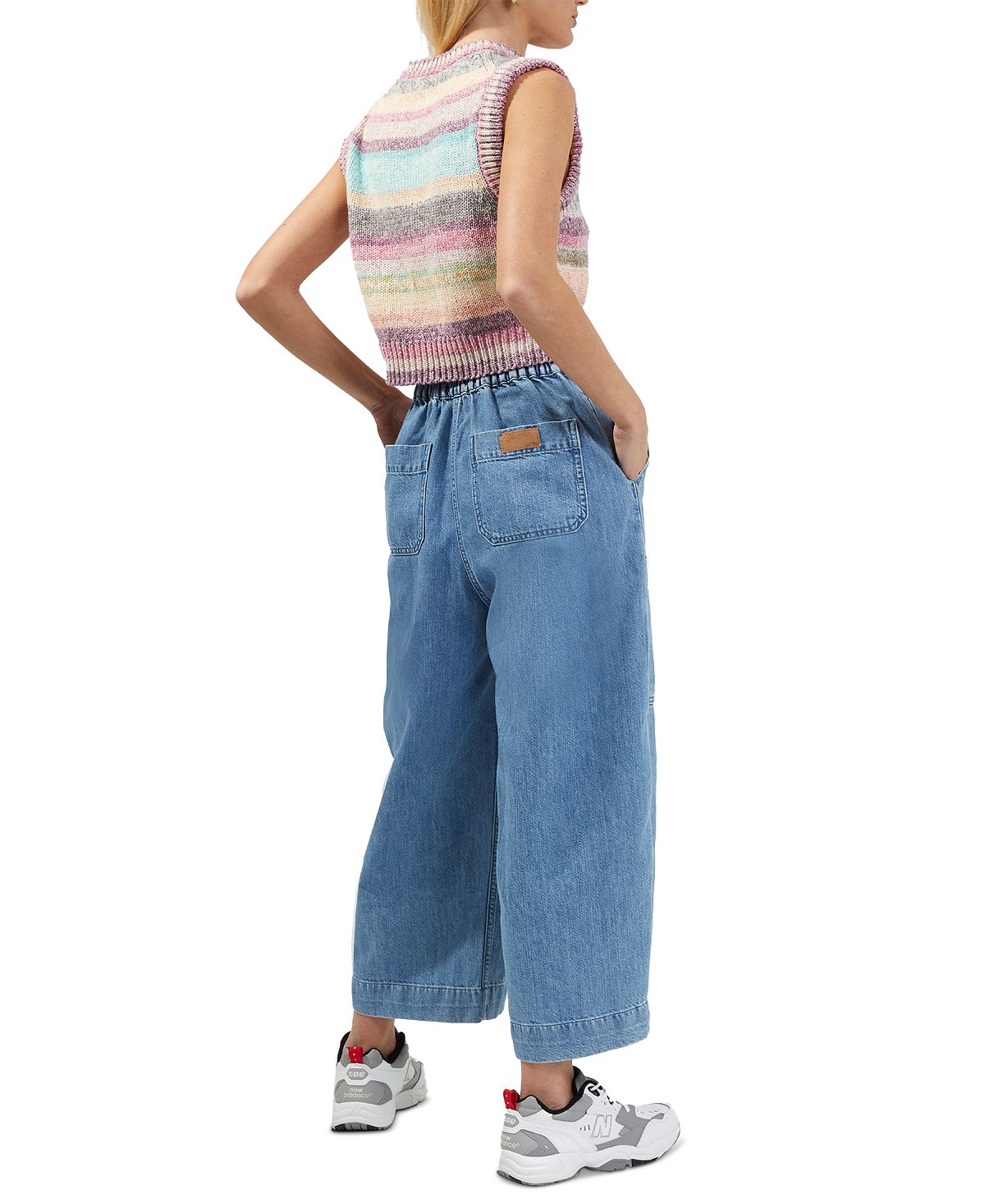 Space-dyed shadings and soft multicolor striping combine in the modern cropped-to-the-waist look of this sleeveless sweater from French Connection.| Fitted| Round neckline with ribbed band| Ribbed trim at arm openings| Acrylic/cotton| Hand wash| Imported