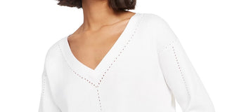 French Connection Women's Leona Pointelle Crop V-Neck Sweater White Size Large