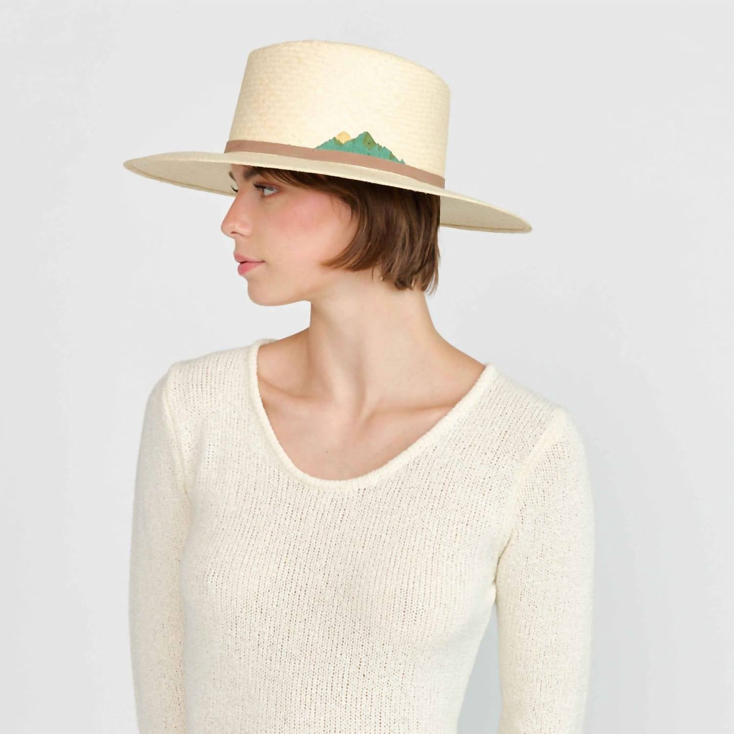 Turn heads in this stylish and chic hat. Not only is this accessory a must for keeping the sun out of your face, it will also be the perfect complement to any cute warm-weather outfit. Elevate your style with the Women's Mountain Embroidery Hat by Freya, a natural straw creation showcasing intricate hand-embroidered mountain scapes. Expertly handwoven from Paja Toquilla straw, this Panama hat features a 9cm (3.54") brim and a chic brown leather ribbon. Available in Small/Medium (55 cm - 57 cm) and Large (58 cm - 59 cm) sizes, each piece is unique, reflecting the natural beauty and variation of the artisan process. Suitable for anyone seeking an exquisite fusion of style and craftsmanship.