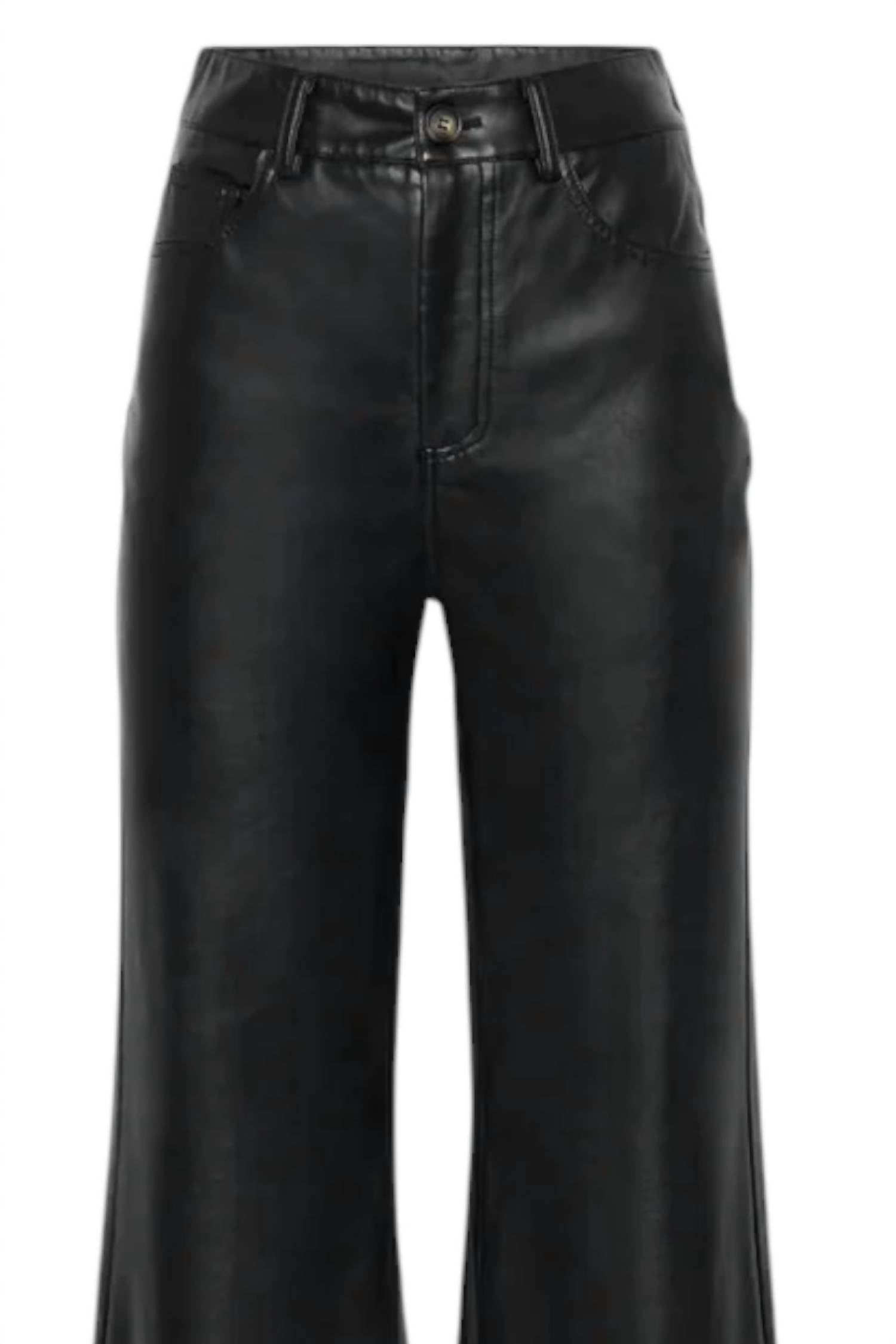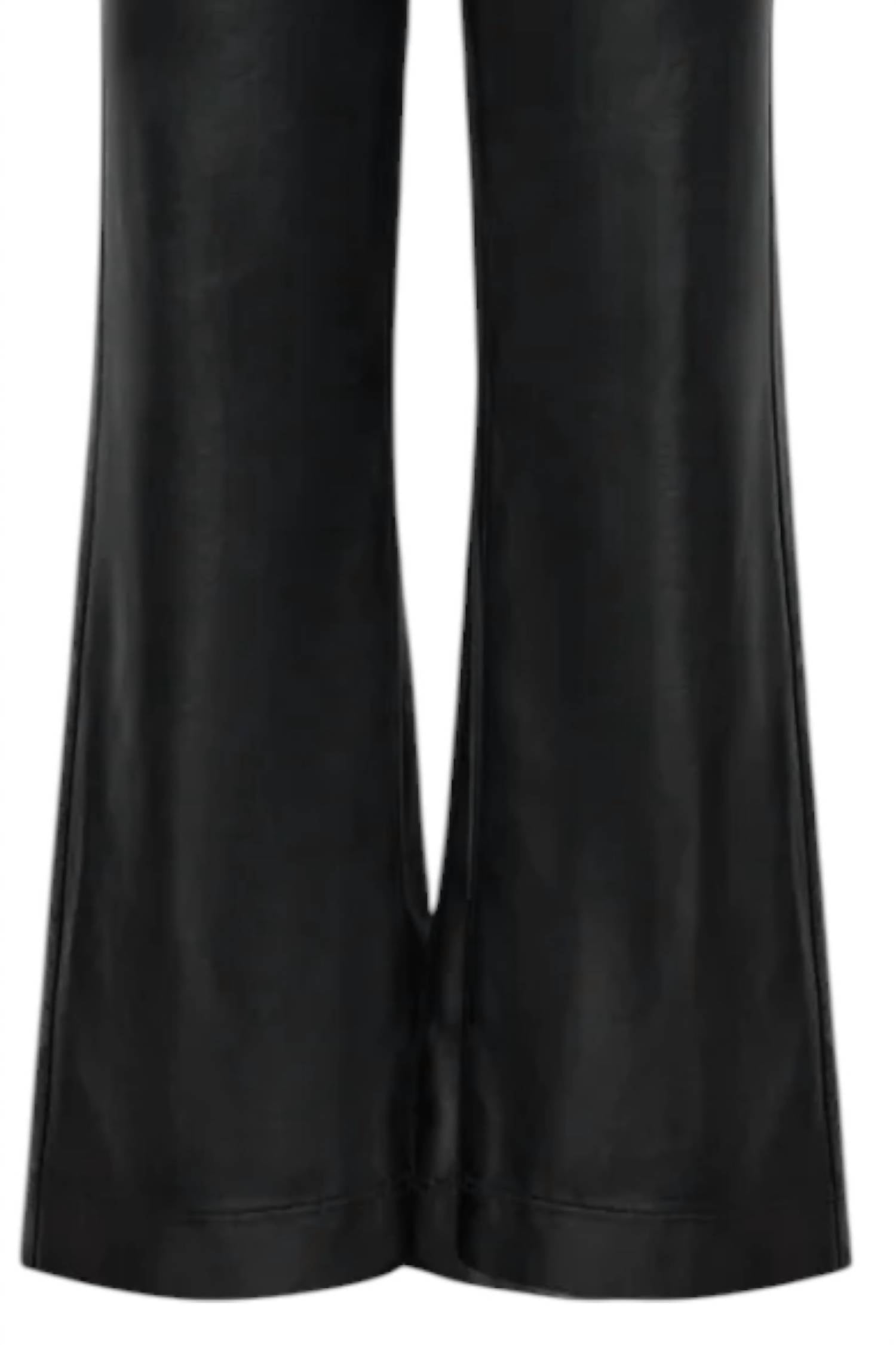 Slightly flared pants are all the rage right now and these are no exception. Pair these with your favorite tee for a more casual look, or with your favorite button-up blouse for an evening out. Elevate your wardrobe with the Women's Faux Leather Bootcut Pants by FRNCH, exuding an effortlessly chic vibe in timeless black. Tailored in faux leather for glam appeal, these pants feature a relaxed fit and a bootcut leg that flatters any silhouette. The high-rise design with convenient button closure makes them comfortable yet stylish. Perfect for any occasion, these solid-patterned pants come with added pocket functionality.