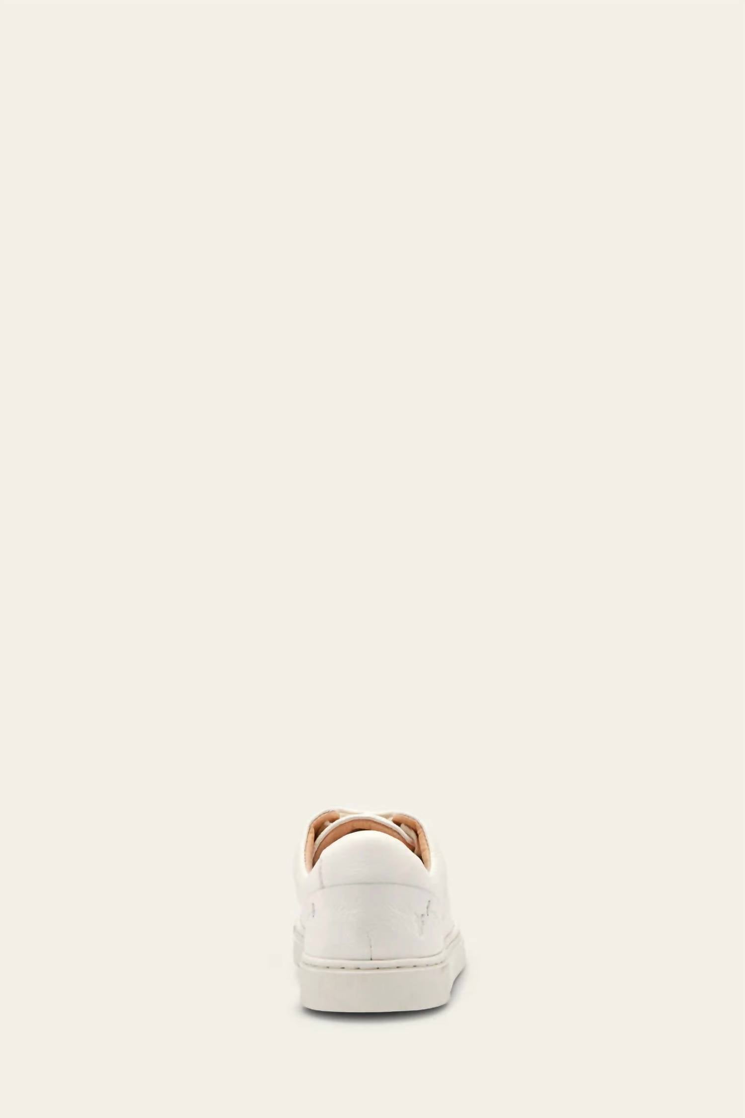 When fashion and function come together seamlessly. Discover the Frye Women’s Ivy Low Lace Sneakers, a perfect blend of style and comfort in pristine white leather. Crafted for the minimalist traveler, these sneakers feature a padded collar and tongue for added comfort, with a molded footbed offering arch support. Notably, the thick rubber outsole measures 3/4", enhancing durability and grip. With a chic round toe design and fabric laces, these shoes are your go-to choice for summer adventures.