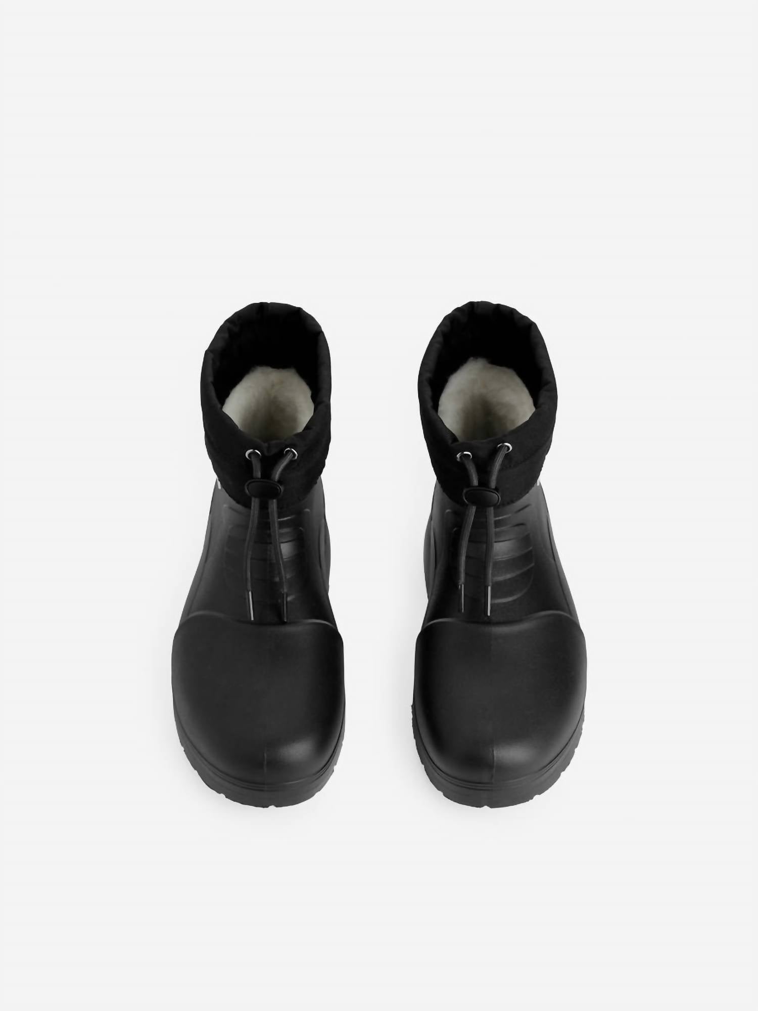 Step out in style with the Unisex 3.0 Low Boots by Fubuki, an essential pick for winter warmth and comfort. Designed with a sleek black finish, these ankle boots feature a round toe and an upper made of 100% Ethylene Vinyl Acetate for waterproof durability, complemented by a cozy polyester lining and a sturdy rubber sole.