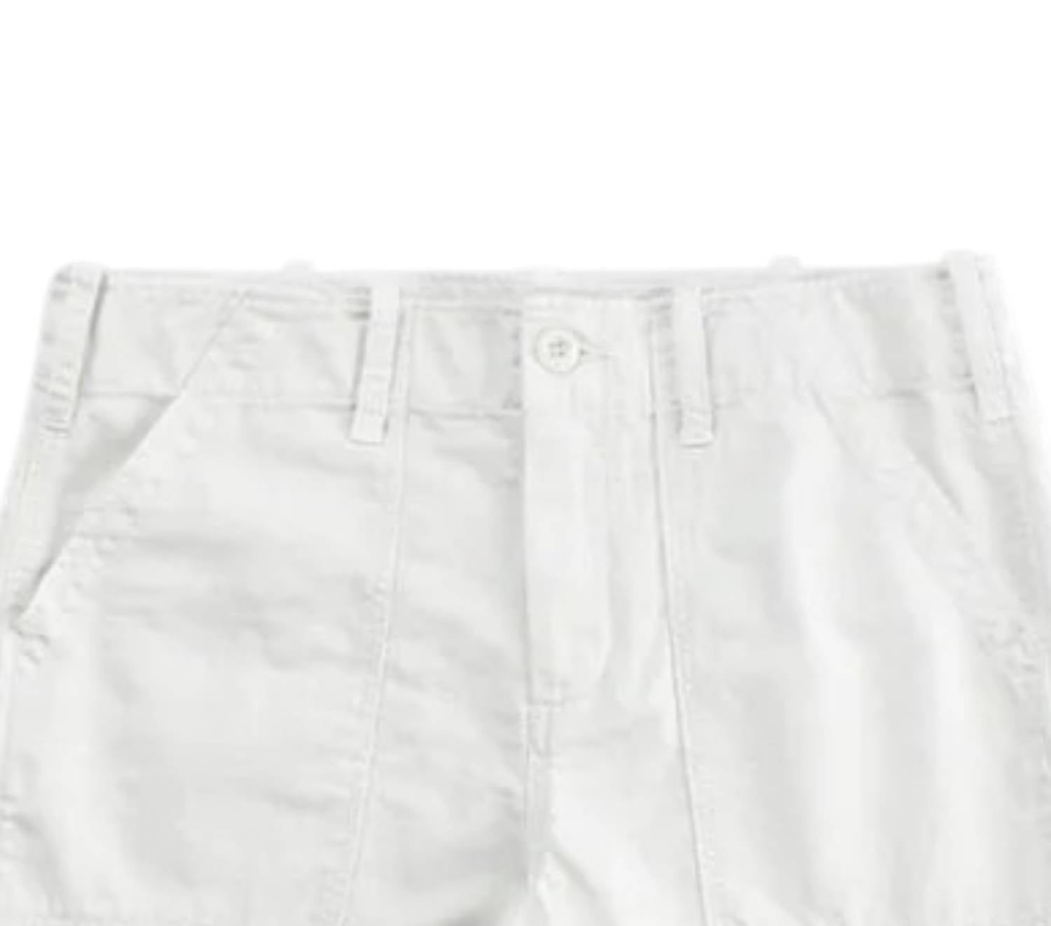 Jean shorts so versatile, you can literally wear them with anything. Discover the effortless style of the G1 Women's Slub Dobby Surplus Shorts, designed for summer adventures in crisp white. Made from 100% cotton dobby, these shorts offer comfort with a 3.5" inseam and 22 3/4" leg opening for size 4. Featuring a classic button closure with a zip fly, they include practical surplus pockets and tonal tape detailing for a chic finish. Care instructions: Machine wash and line dry for easy maintenance.