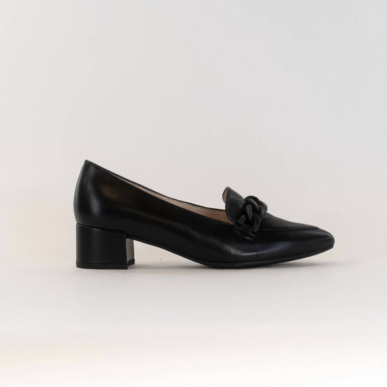 This sandal will take you from brunch to dinner and everything in between. Elevate your office and evening style with the Gabor 91.441.27 sandals, featuring a chic block heel and a pointed toe for a sophisticated look. Crafted from premium leathers, these black sandals epitomize the monochrome trend, making them ideal for formal occasions in the spring season. Careful detailing with hardware on the vamp enhances their elegance, ensuring both comfort and style for any adult women's wardrobe. Perfect for pairing with slacks or dresses, these versatile heels by Gabor are a must-have for any fashion-forward closet.