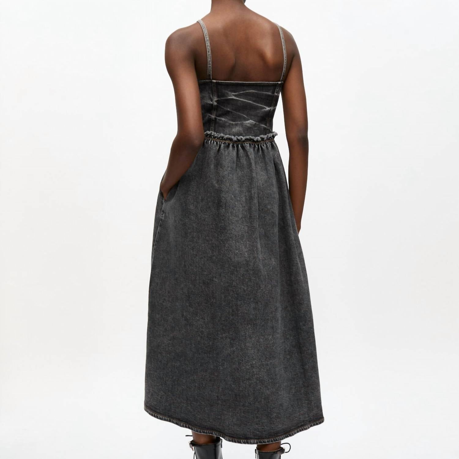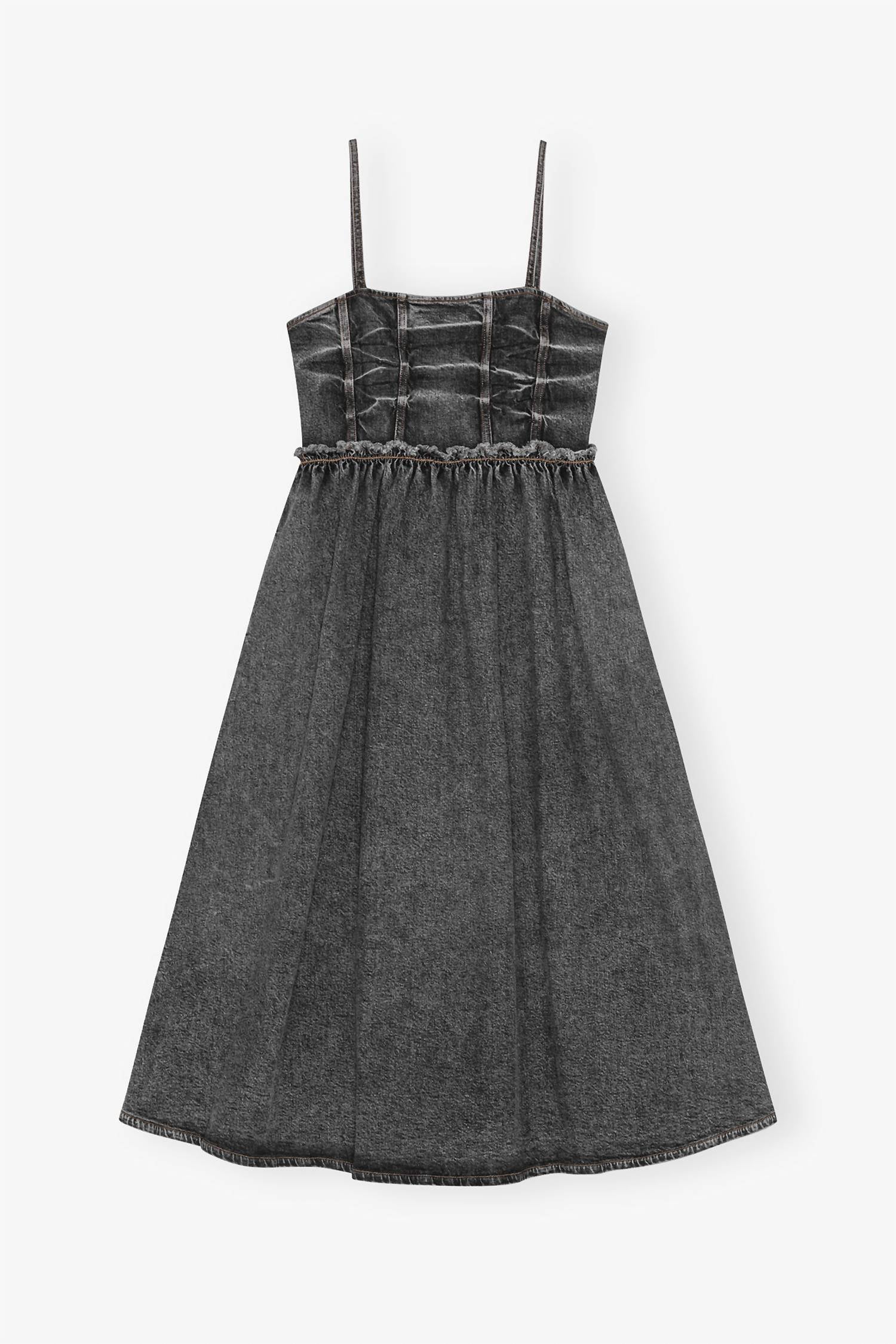 Just add slides or mules and you are good to go. Presenting the Stretch Future Midi Dress by GANNI, unveiled on the Spring/Summer 2025 runway in a chic black wash. This stylish piece features spaghetti straps and a flattering squareneck, accentuated by ruffle details and an elegant flared skirt. Crafted from a luxurious cotton blend, comprising 59% organic cotton, 40% viscose, and 1% elastane, it offers both comfort and style. Closure: Pull-on, with care instructions to machine wash cold.