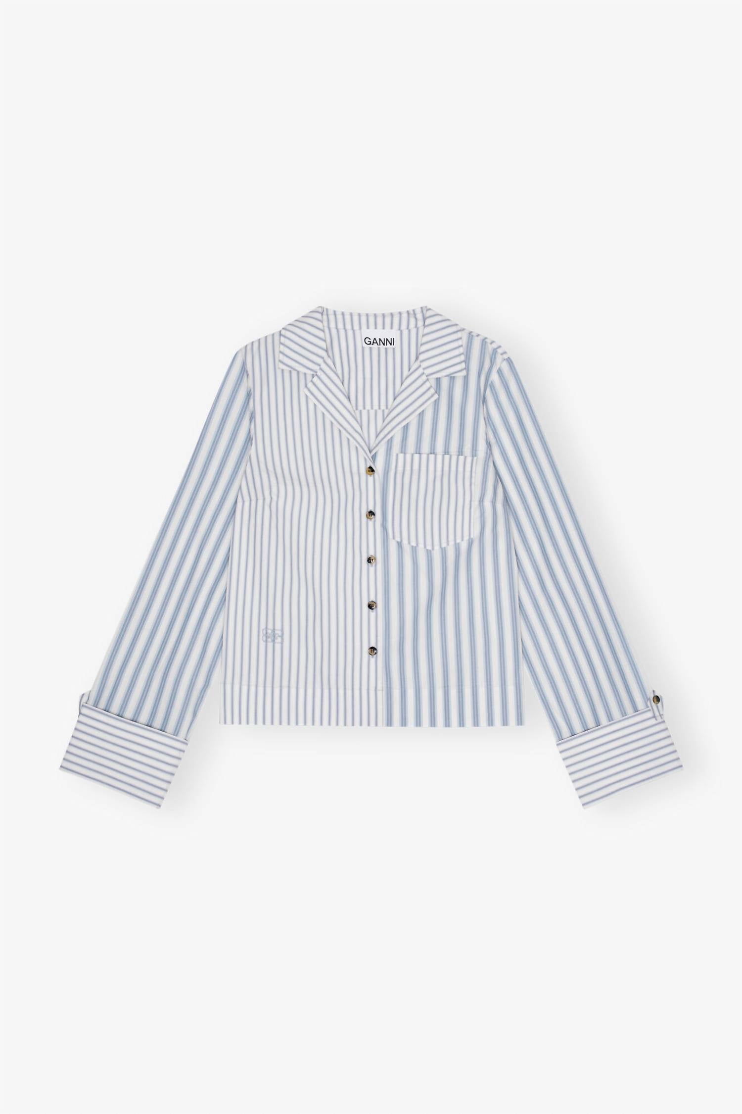 A classic button down shirt that will never go out of style. Elevate your workwear wardrobe in Egret. Featuring a stylish V-neckline and long sleeves with buttoned cuffs. Crafted from 100% organic cotton. Offers comfort and sustainability. Button closure at the front and the practical front pocket enhance its functionality. Care instructions include machine wash cold and ironing at medium heat, avoiding bleach and tumble dry.