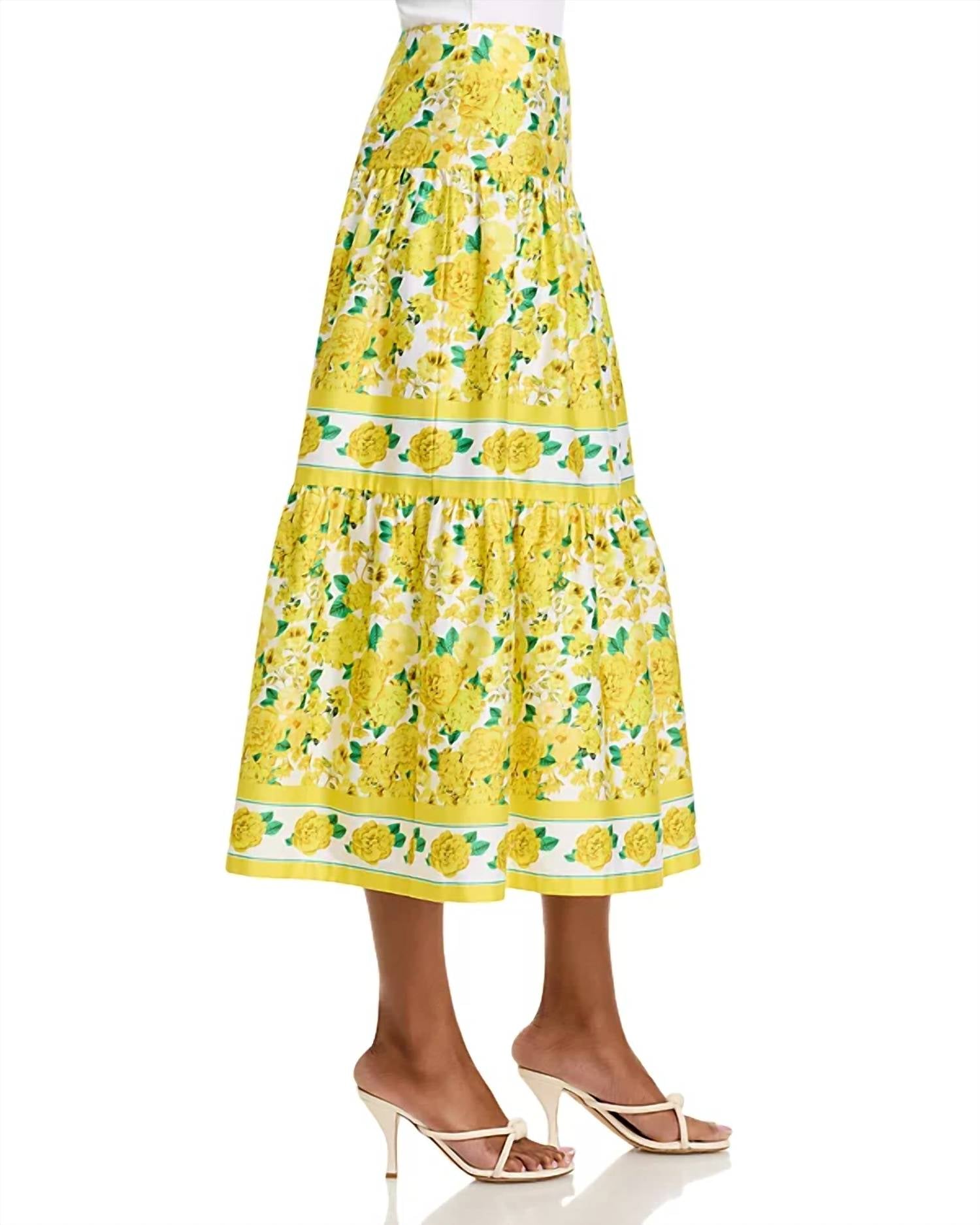 Embrace summer style with the Mondo Floral Poplin Skirt by Generation Love, a chic piece featuring a captivating Floral Fantasy White design. This maxi skirt boasts a 35" length and is crafted from a comfortable 94% Cotton and 6% Elastane blend, ensuring a regular fit. Designed with a side invisible zipper closure, it's lined for added comfort. Care for it with a warm machine wash and low tumble dry for easy maintenance.