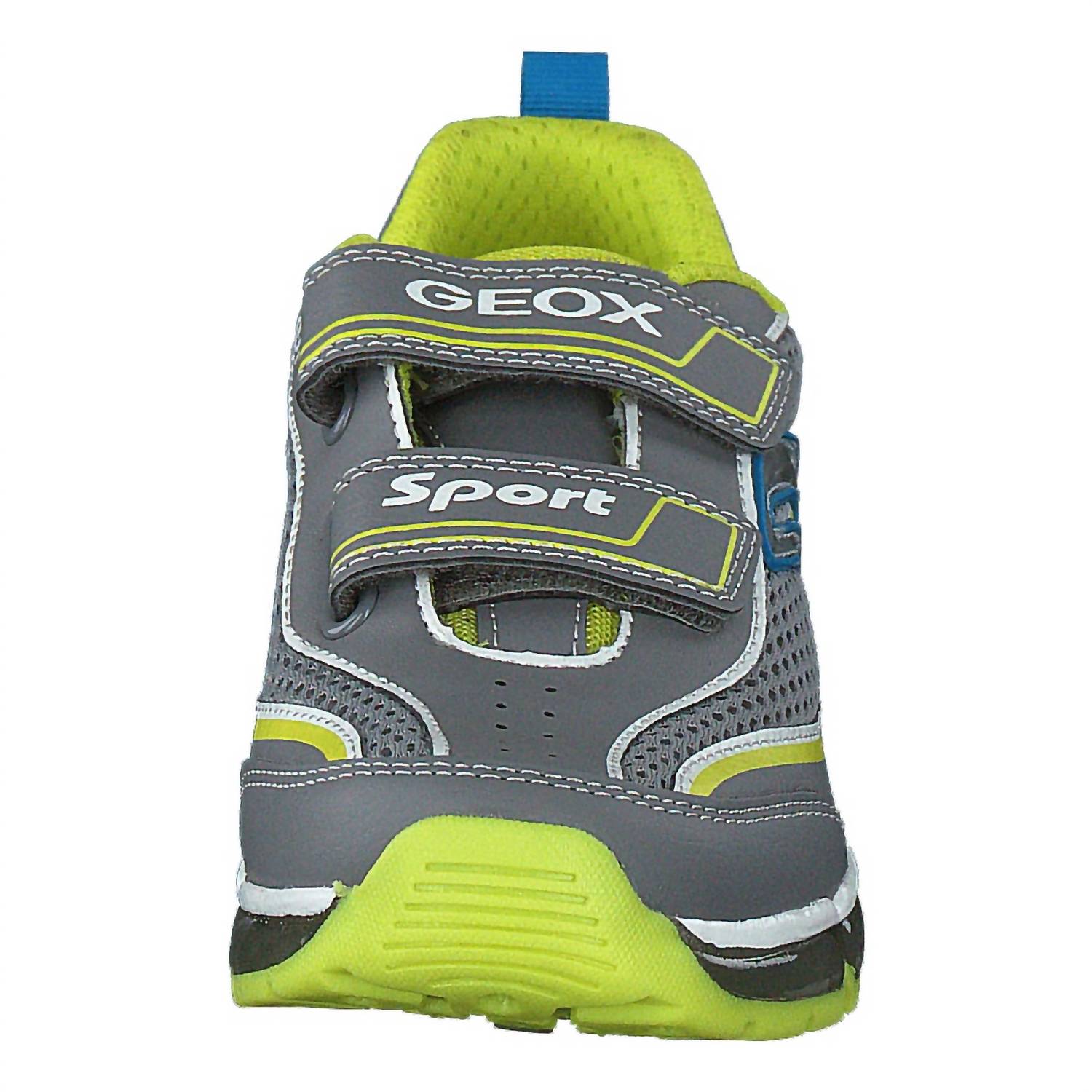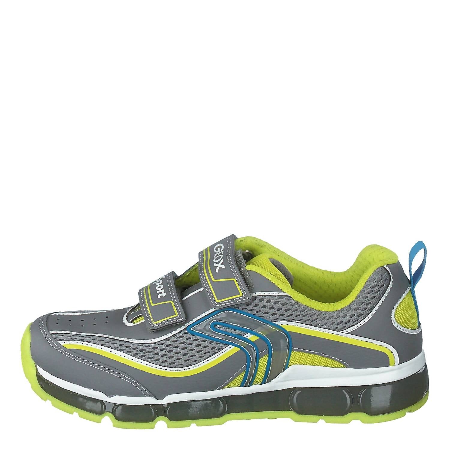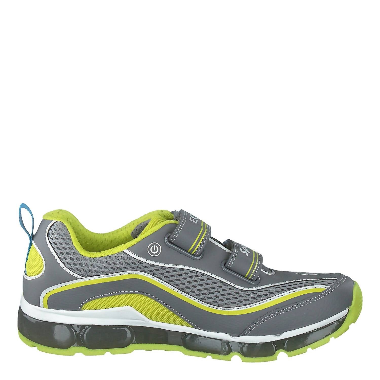 The Junior Boys Android Sneaker by GEOX in lime grey is perfect for back-to-school adventures. These sneakers feature synthetic uppers and a textile lining for comfort. The round toe shape and fun light-up soles add a playful touch to every step. Fastening is made easy with velcro straps, ensuring a quick and secure fit.