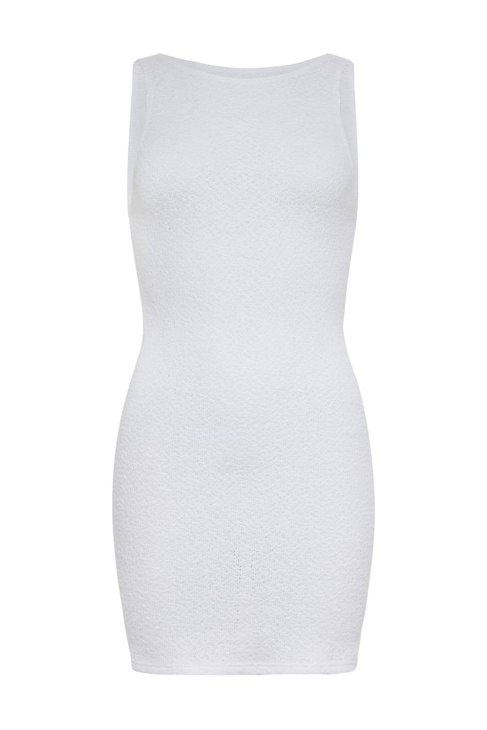 A short and breezy dress for those warmer days.Captivating piece of sophisticated elegance. Sleeveless, bodycon mini dress. Crafted from luxurious cotton crochet fabric. Handmade with love in limited quantities in US. Features a sensual low back and a timeless boatneck. Making it an ultra-versatile staple. Offers an effortless pull-on closure. Dry clean highly suggested.