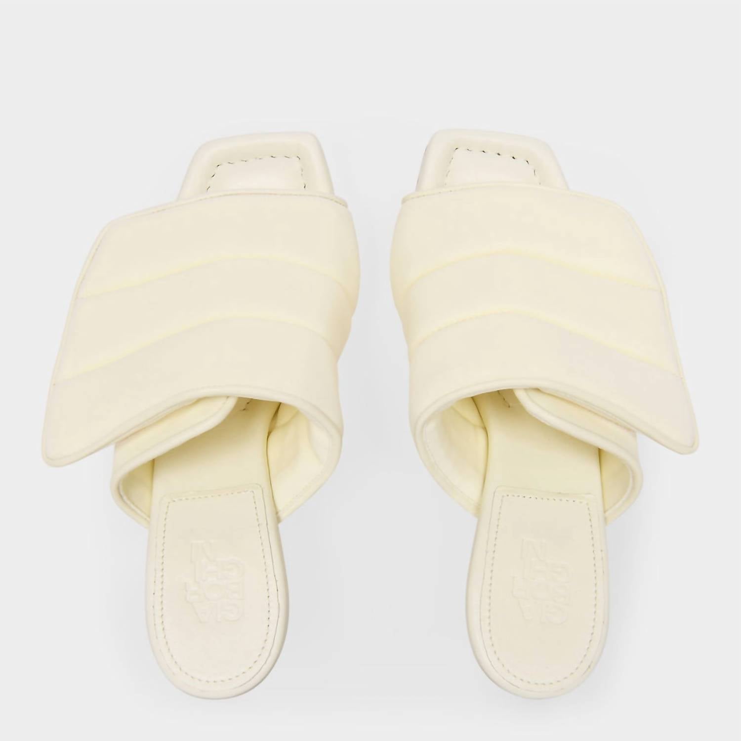 Flowy dresses, cropped pants, and even jumpsuits... this sandal works with them all!This Women's Gia 4. 85mm Heel, Velcro Strap. Composition: Scuba-100% Nappa Leather. Color: Ivory, Butter Yellow. Fit: True to Size