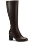 2-1/2 block heel|Shaft height; 14-3/4; circumference; 14-1/4; measured on a size 6|Round-toe riding boots with inner ankle zipper closure|Buckled strap at ankle|NOTE; Shaft height and circumference vary by size.|Leather upper; fabric lining; manmade sole