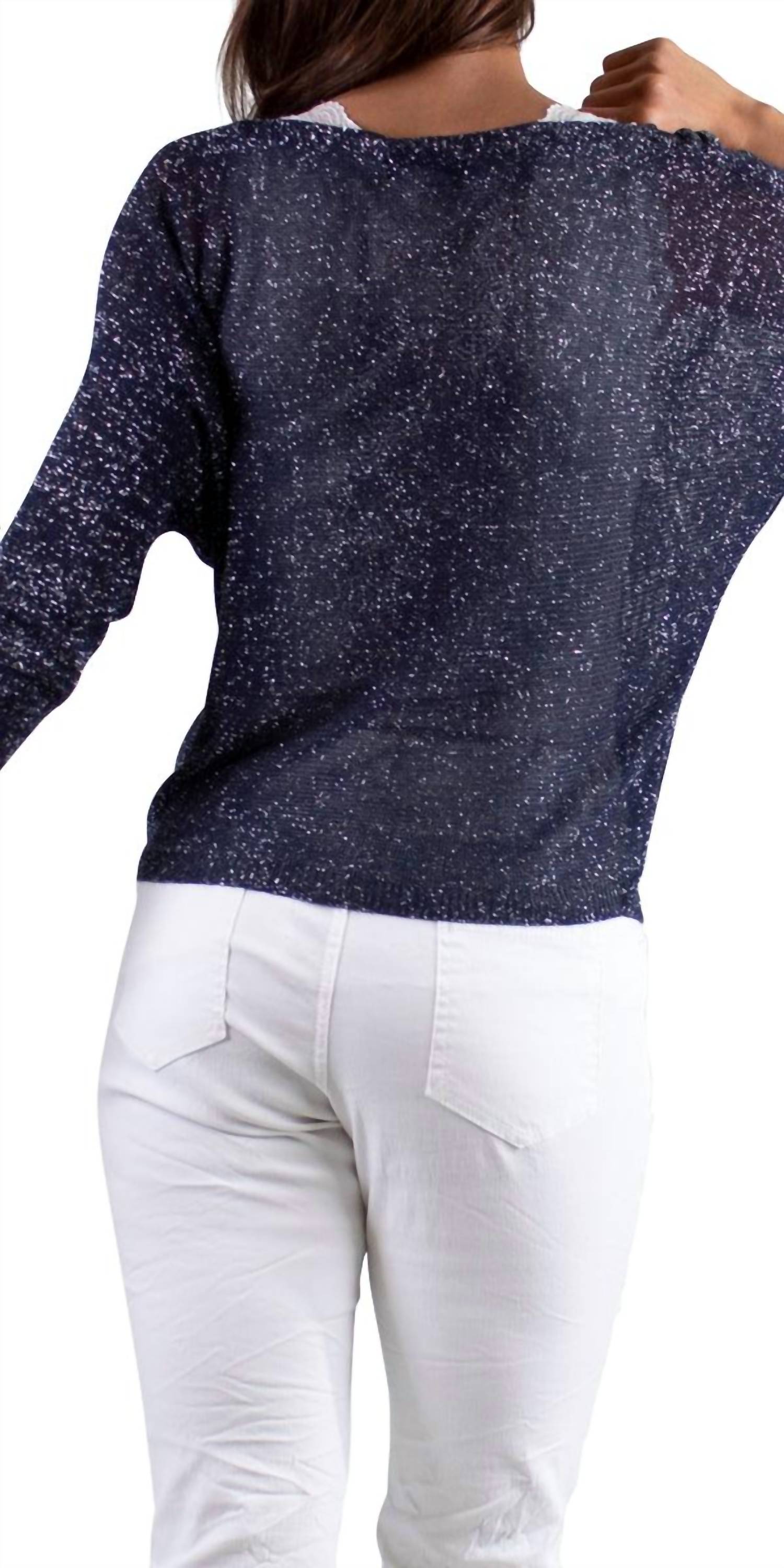A versatile blouse that works from desk to dinner! Discover the Aliocha Sparkle Light Knit Top by GIGI MODA, an elegant choice for any occasion with its delicate speckled sparkle print. This navy blouse features a breathable, lightweight knit and three-quarter sleeves for an effortless fit. Made from an 88% Viscose, 12% Nylon blend and crafted in Italy, this top ensures both style and comfort. With a convenient pull-on closure, it is easy to maintain with hand wash and line dry care instructions, making it perfect for your summer wardrobe.