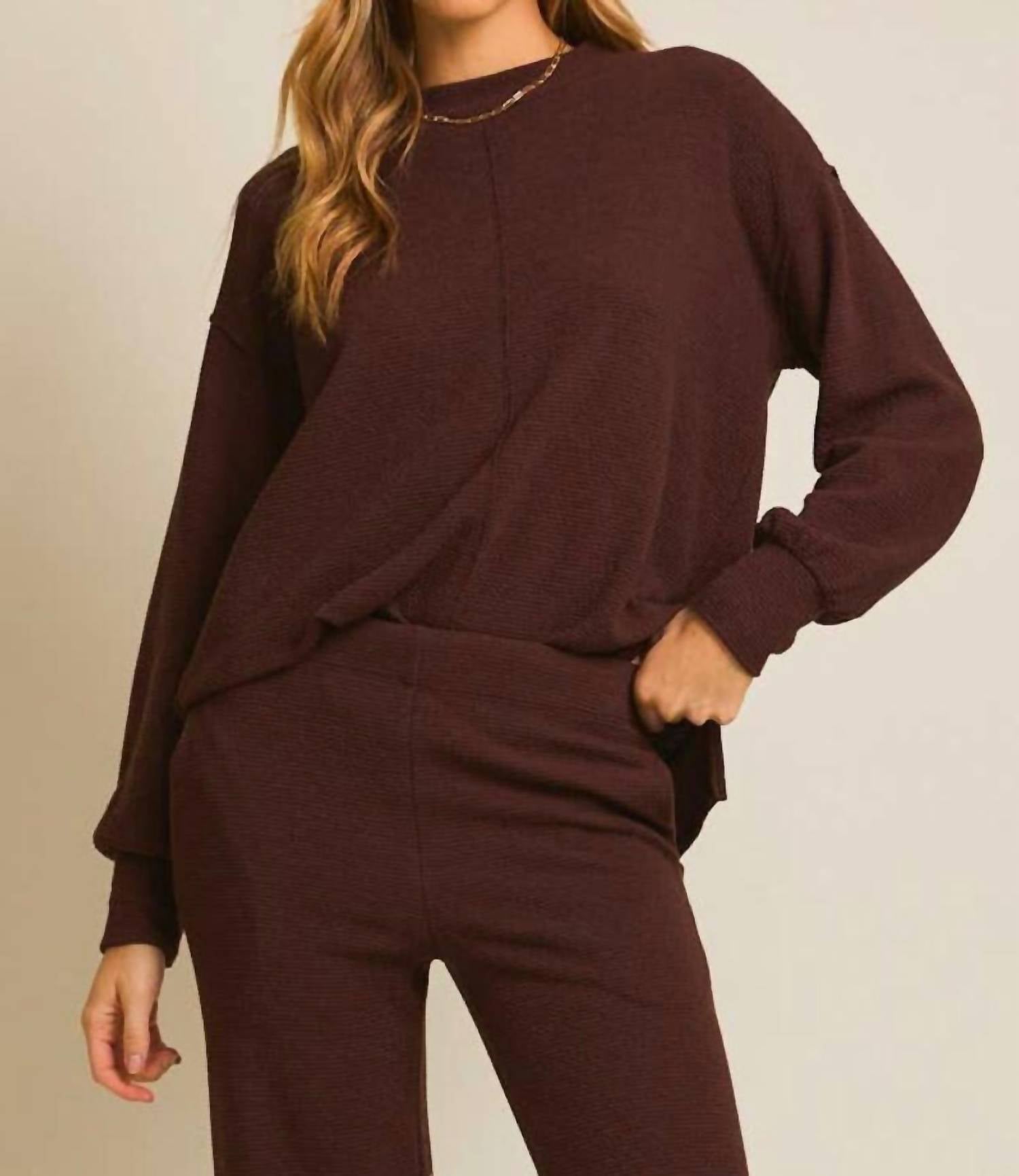 A match made in heaven. This two-piece set is so cute, you'll wish you could wear it out of the house! Did we mention how comfortable it is, too? You may want two sets! Embrace laid-back style with the Weekender Knit Tunic and Pants Set by GILLI, offering ultimate comfort in a minimalist design. This brown loungewear set features long sleeves with a high round neckline and side slits for easy movement. Crafted from a cotton blend composed of 71% polyester, 27% cotton, and 2% spandex, the fabric offers slight stretch. Care is simple: machine wash cold and tumble dry low. Available in sizes S (Bust 34-36 in, Waist 26-28 in, Hip 36-38 in), M (Bust 37-38 in, Waist 29-31 in, Hip 39-41 in), and L (Bust 39-40 in, Waist 32-33 in, Hip 42-43 in).