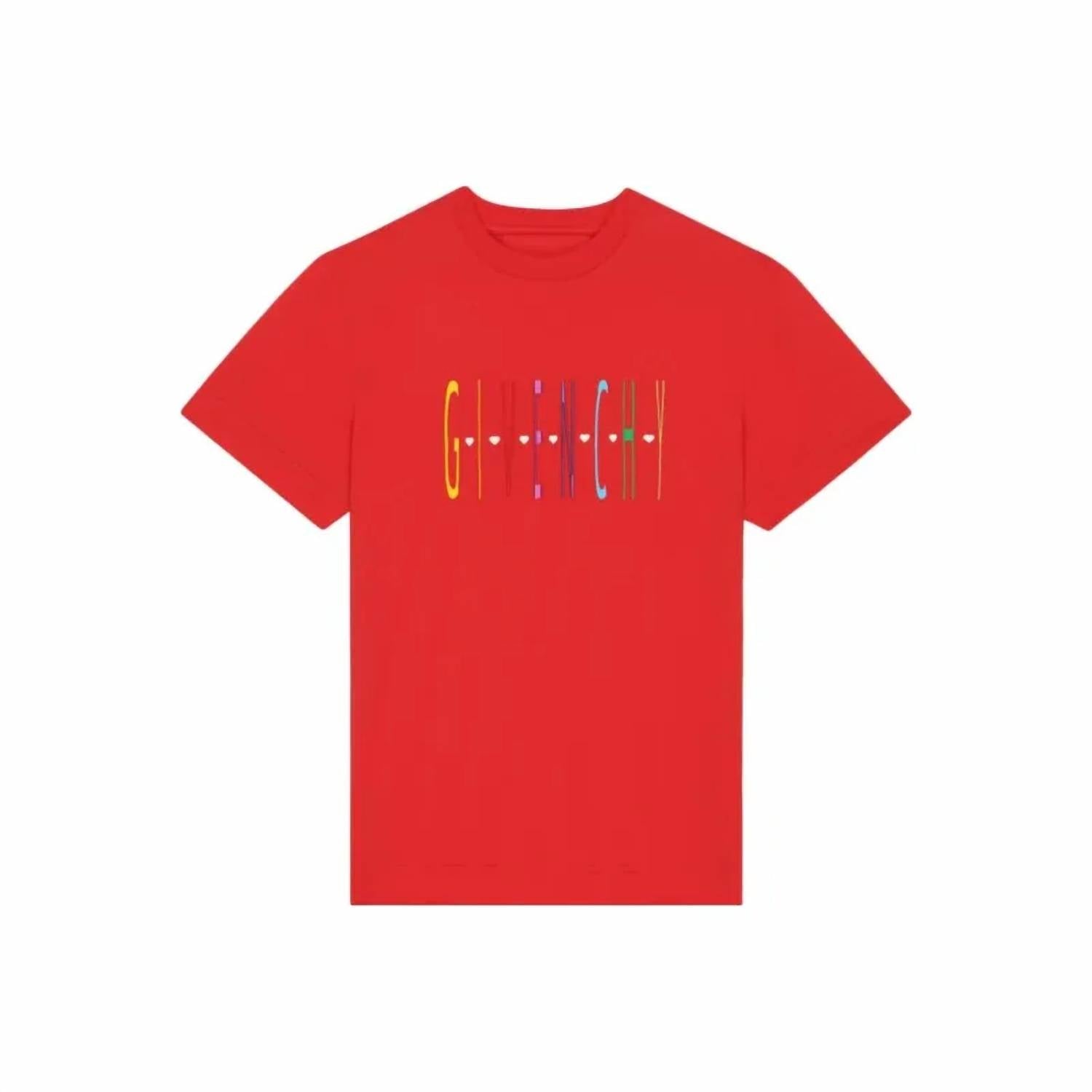 Introducing the Disney x Givenchy Graphic Logo Slim Fit T-shirt, a statement piece for the modern man. This red tee features short sleeves and is crafted from 100% cotton, ensuring comfort and breathability in the summer heat. It boasts the Givenchy signature embroidered with hearts on the front and the iconic 4G emblem at the back. Designed with a crewneck and a pull-on closure, this vacation-ready shirt is perfect for embracing Y2K trends.