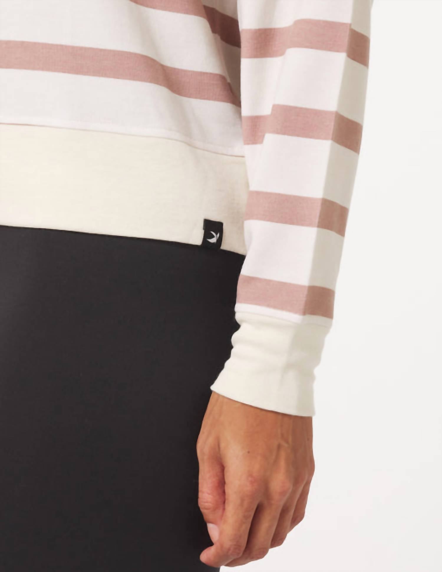 A long sleeve top you can wear with denim, skirts, well... just about anything! Introducing the Glyder Laid Back Long Sleeve Crew, designed for ultimate comfort in a chic Oatmilk and Mocha stripe. This women's tee is crafted from plush ISOSOF™ fabric, composed of soft Modal and Spandex, perfect for a cozy fit. Styled with a crew neck, this long-sleeve top offers a boxy fit and a lightweight, airy feel, ideal for layering. Featuring a pull-on closure, it's crafted for hassle-free wear.