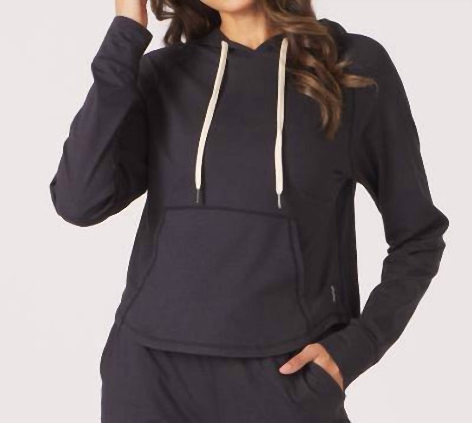 Whether you're running around town or lounging at home, this sweatshirt works for both. Introducing the Rocky Hoodie by Glyder, an essential piece for when you need a touch of extra warmth. With long sleeves and made from luxurious MARBLED JERSEY™ fabric, it features a timeless black marble color. The pullover style comes with a convenient drawstring hood for added coziness and functionality. Closure: Pull-on.