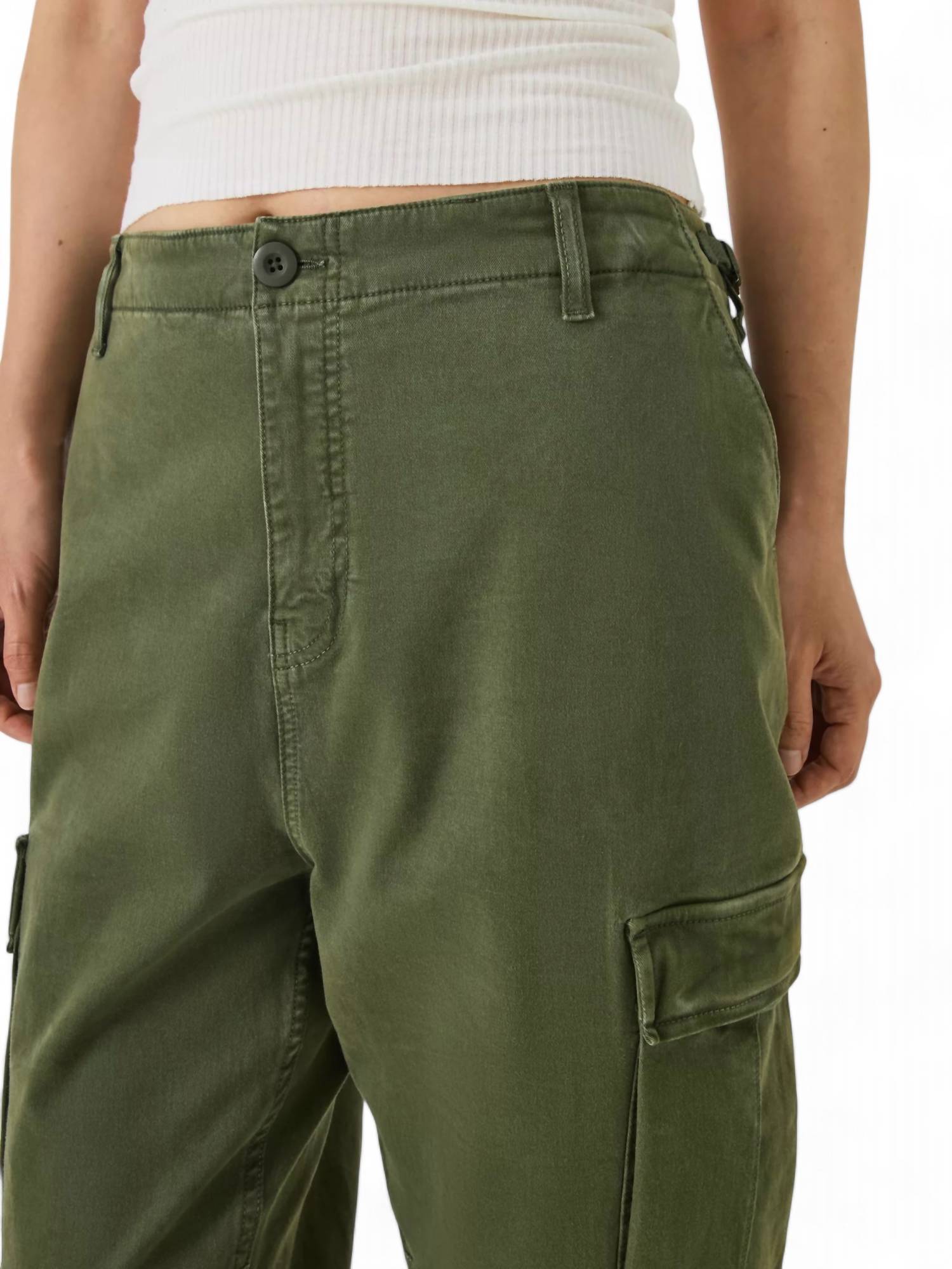 This straightleg pant is both stylish and comfortable. Did we mention the fit is perfection? These cargo pants sit high on the hips and are cut in a straight shape for a flattering fit. They feature button closure back flap pockets, slant front pockets, and cargo side pockets for practical storage. Made from 78% cotton, 20% recycled cotton, and 2% elastane, they offer a comfortable and flexible fit. For care, machine wash in cold water.