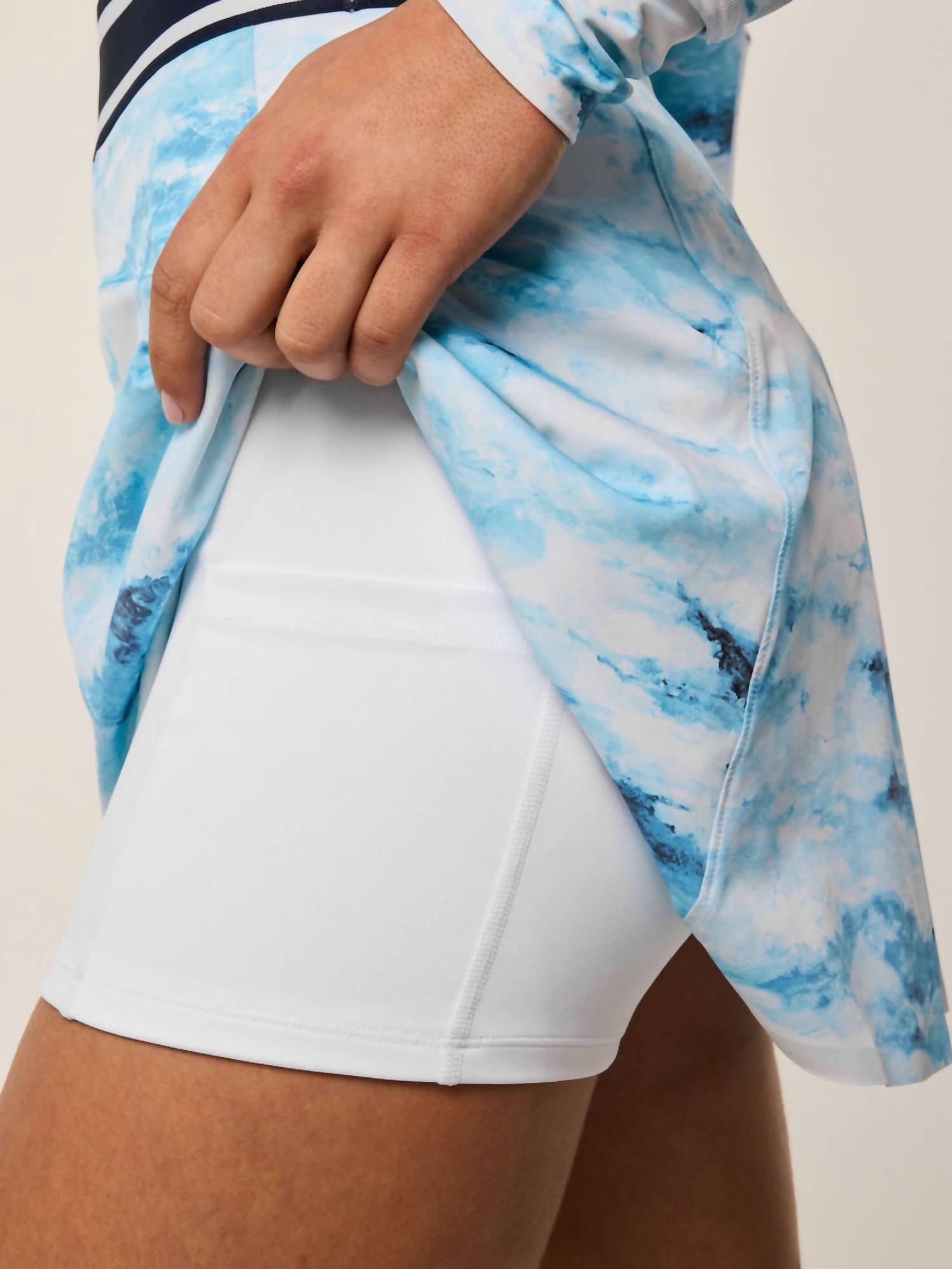 Tuck in your favorite tee for a more laid-back vibe. Experience the Painted Clouds Phoenix Flare Skirt by Greyson Clothiers, perfect for fitness and beyond in a dreamy Heaven hue. This patterned mini skirt is expertly crafted with 85% Nylon and 15% Elastane, offering both performance and style. Featuring a practical pull-on closure and convenient side pockets, it's designed for effortless movement. Care: Machine wash and tumble dry.
