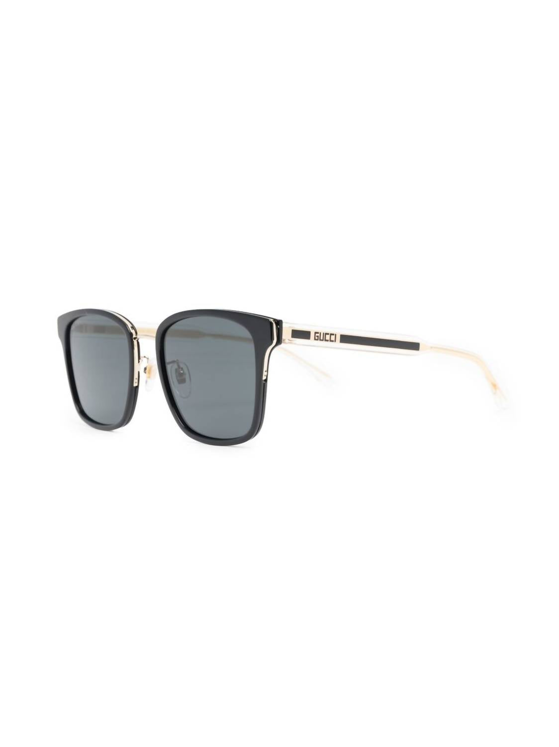 Introducing the Men's GG0563SKN Sunglasses by Gucci, the epitome of sleek style and functionality. These square sunglasses perfectly complement oval and round face shapes, offering a sophisticated touch in classic black and grey. With a high-fit bridge, these non-polarised acetate frames provide a comfortable and secure fit. Lens width is 55mm, nose bridge measures 21mm, and the temple length is 150mm, making them an ideal accessory for everyday wear.