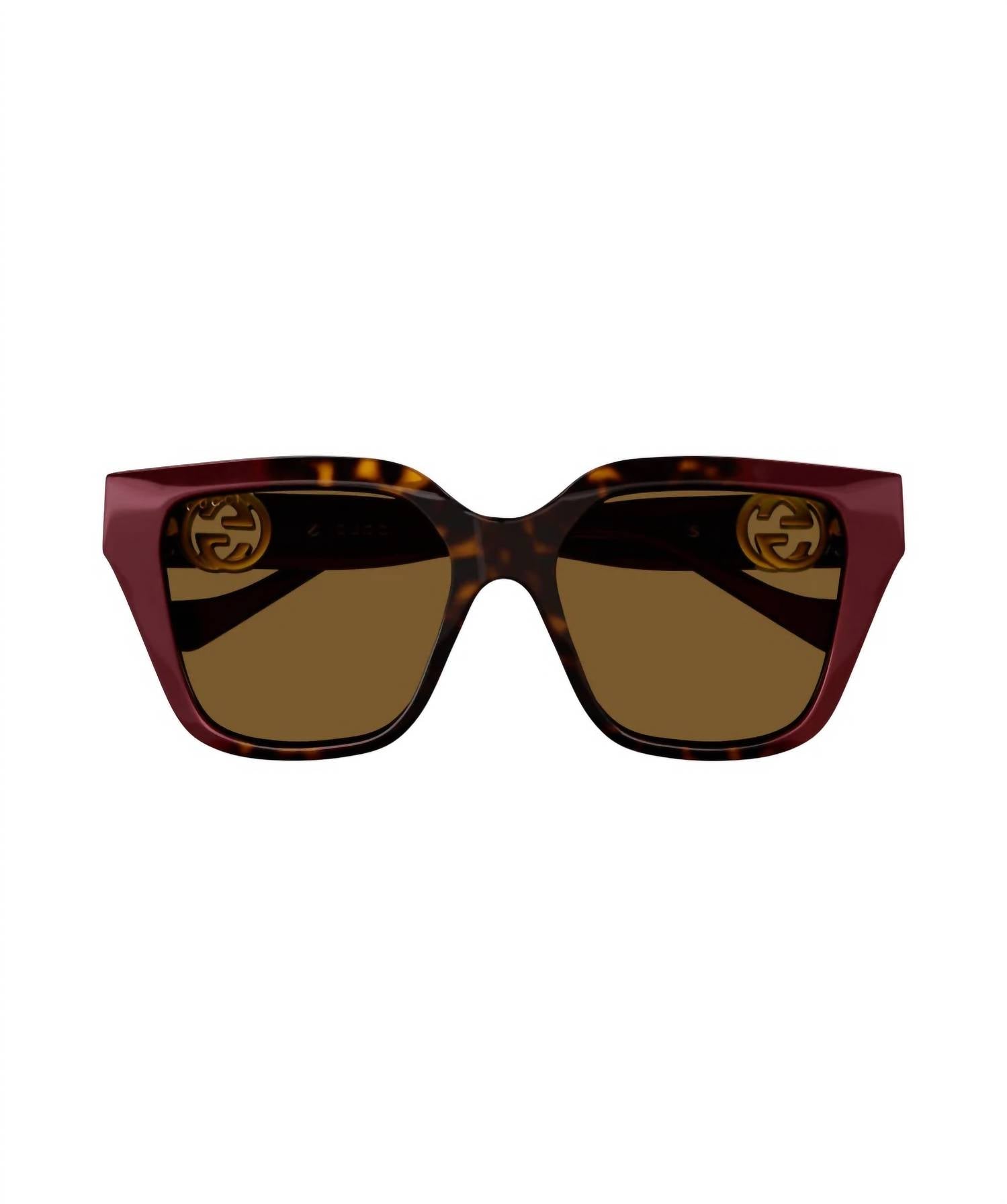 Make a statement and shield your eyes in these fashionable, yet practical sunglasses. Grab these adorable shades for your next vacation and elevate your accessory game. Made in Italy, these sunglasses feature a square shape with a lens color of brown, ensuring a stylish look with non-polarized glasses. Crafted from injected material, they provide comfort along with a bridge of 17 mm and sideburns measuring 140 mm for a perfect fit.