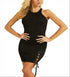 Soft ribbed knit and a bodycon silhouette lends a shapely fit on this sleek sleeveless dress from GUESS| punctuated with an alluring lace-up detail at the hem.| Approx. 34-5/8 long from center back neck to hem| Crewneck; Bodycon silhouette| Pullover styling| Lace-up tie details at side hem; ribbed knit