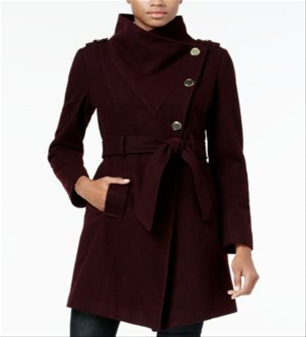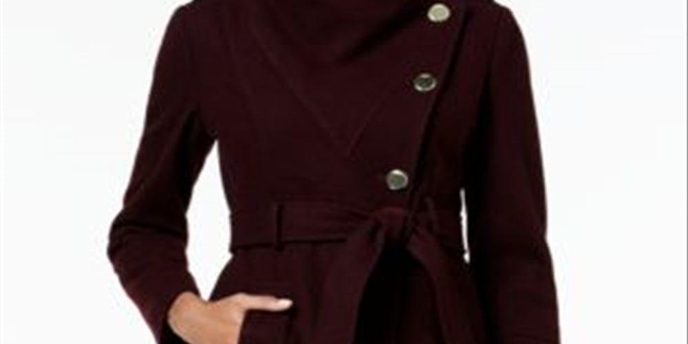 Guess Women's Asymmetrical Belted Walker Coat Wine Size XL