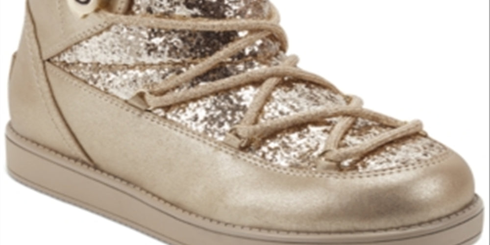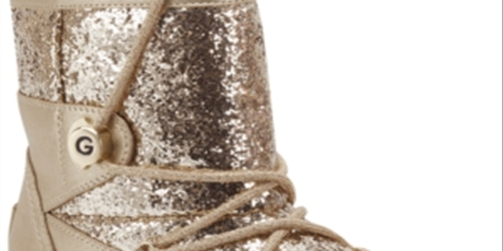 Flashy style for frosty times| the G by Guess Aylan booties feature lustrous lace-up detailing over sparkly warmth