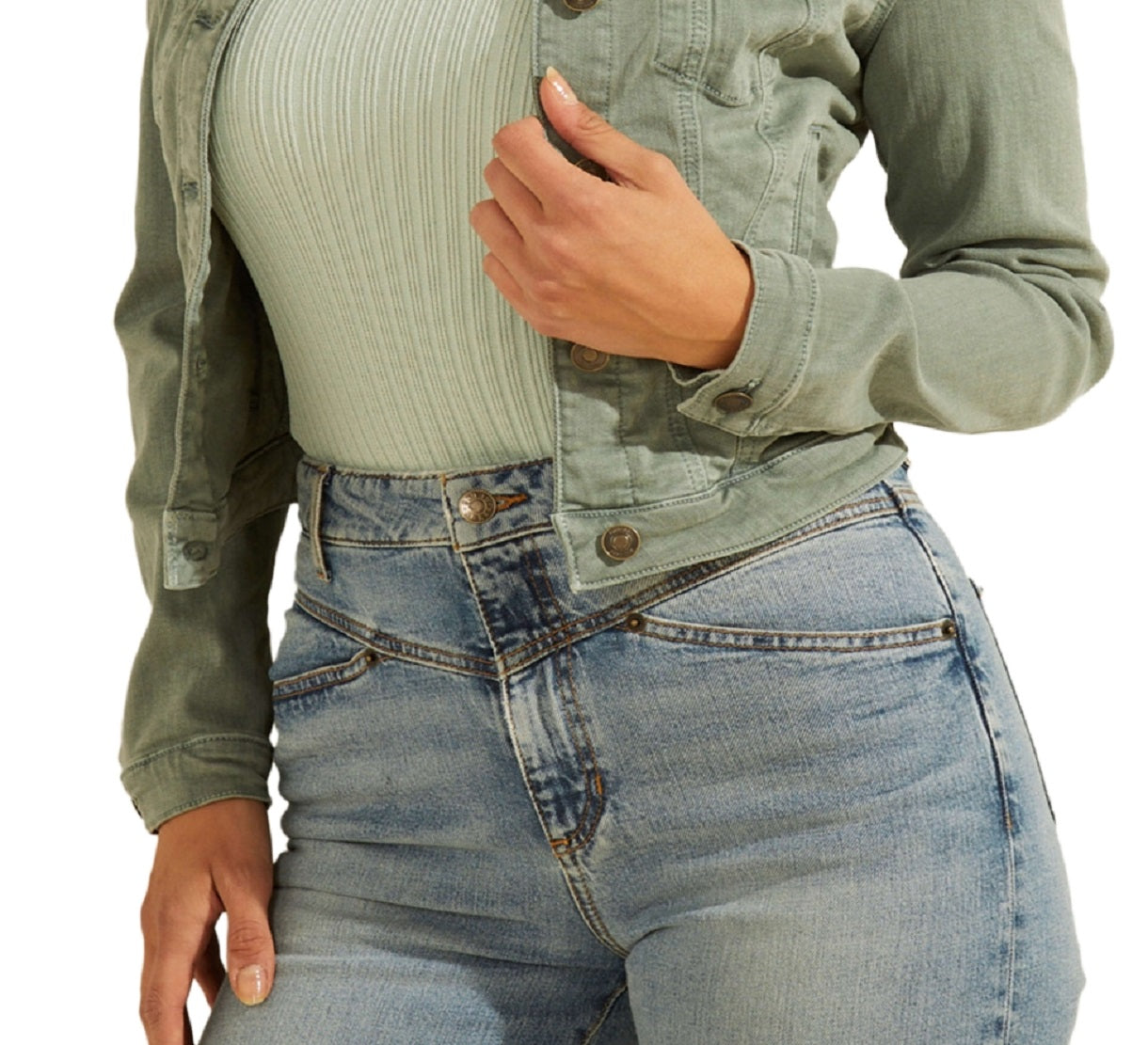 GUESS keeps it classic and cool in this button-up trucker jacket that layers over your everyday looks to perfection.| Spread collar; button-front closures| Buttoned flap pockets at chest; side pockets| Cotton/lyocell/elastomultiester elasterell-P/elastane spandex| Machine washable| Imported