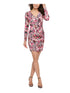 GUESS Women's Floral Long Sleeve V Neck Short Evening Dress Pink Size 2