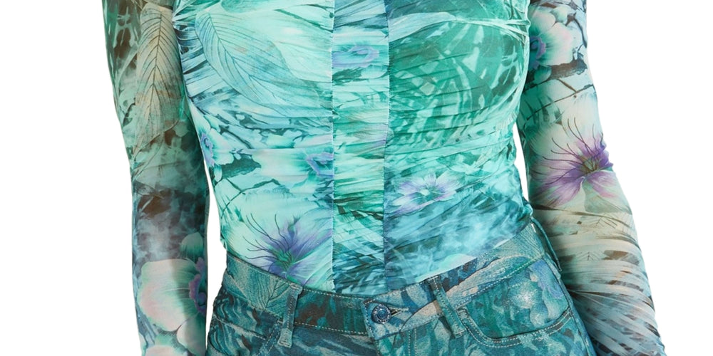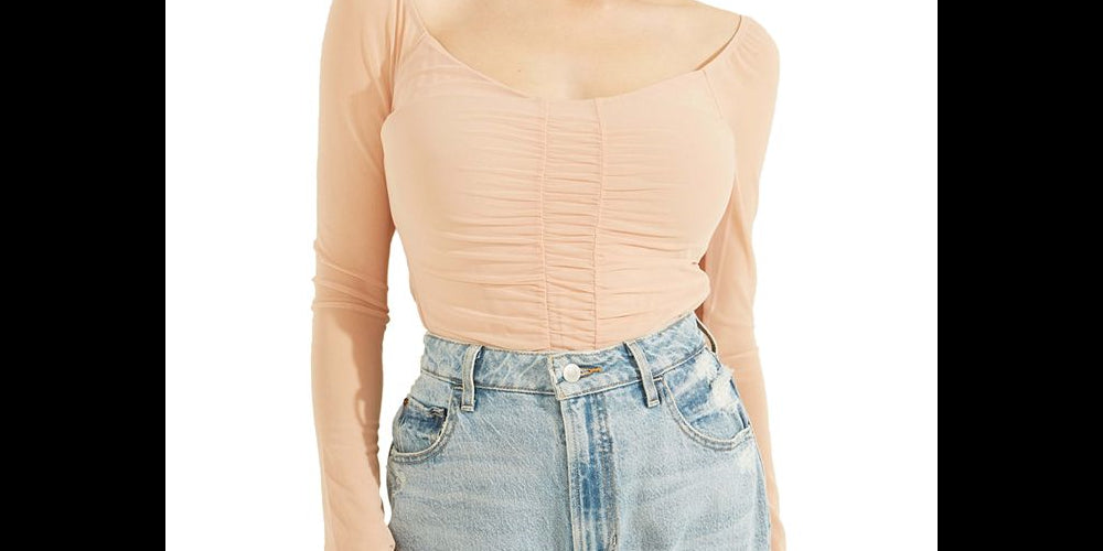 Shirred accents and long| sheer sleeves come together flawlessly on the Kimbra top from GUESS.| Sweetheart neckline| Shirred detail| Long sheer sleeves| Shell; nylon/spandex; lining; polyester/spandex
