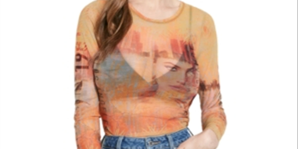 Guess Women's La 1981 Mesh Top Gold Multi Size XS
