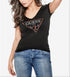 GUESS Women's Logo V Neck T-Shirt Black Size XS