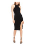 Guess Women's Slitted Solid Sleeveless Turtle Neck Knee Length Body Con Party Dress Black Size L