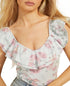 GUESS Women's Veronika Double Ruffled Printed Top Blue Size X-Small