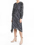 Experience the effortless elegance of H&M's Striped Print Pointed Hem Chiffon Dress, perfect for any occasion. This long-sleeved dress features a charming striped pattern and showcases a flattering A-line silhouette with a unique pointed hem. Crafted from 100% polyester chiffon, this calf-length dress highlights a scoop neckline and an elastic waist with a drawstring for a tailored fit. Closure: Front button. Color: Navy, White. Lined for added comfort, this versatile piece effortlessly elevates your wardrobe.