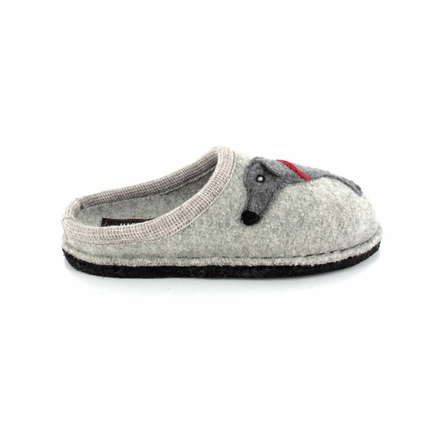 Pair these with a cozy robe and we call this loungewear luxe. Introducing the HAFLINGER Women's Doggy Boiled Wool Slipper, a cozy choice for keeping your feet warm in style. Crafted from all-natural, boiled wool in an elegant Silver Grey, these slippers feature a felted wool sole and a nonskid indoor sole for stability. The cork-and-latex midsole ensures cushioned, anatomical support for all-day comfort, while the round toe and flat heel design offer a classic slip-on style. Proudly made in Poland, these slippers are a delightful addition to your indoor footwear collection.