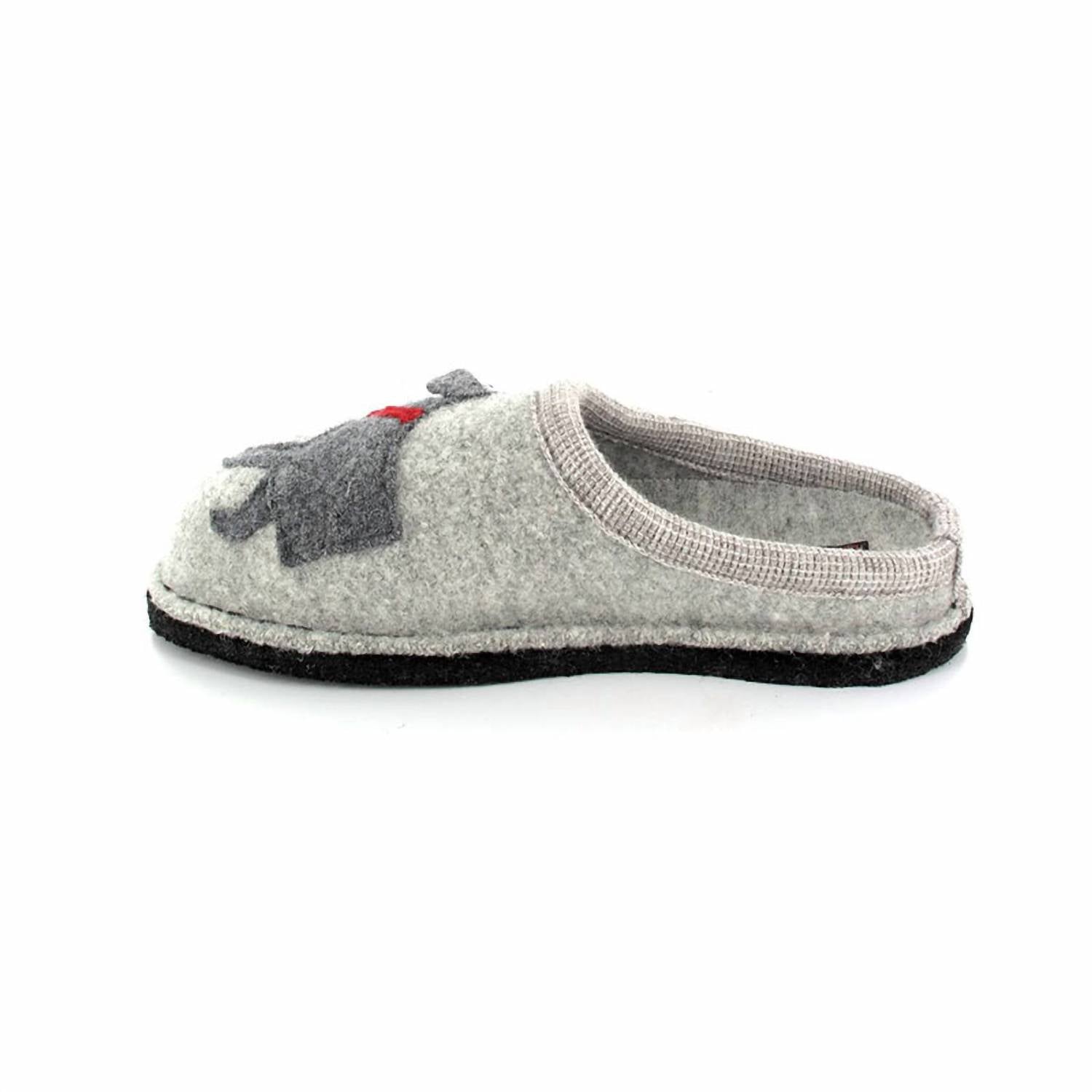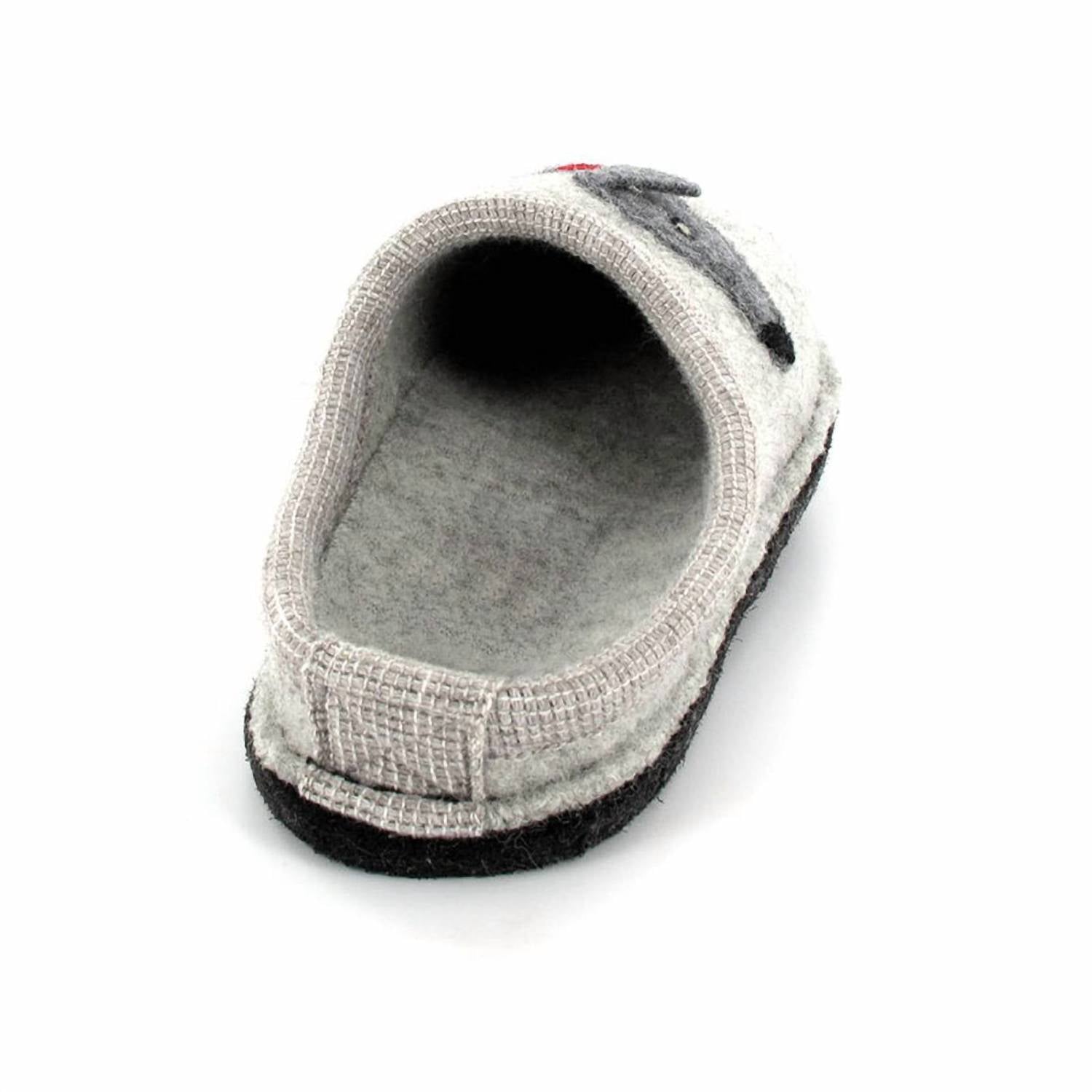 Introducing the HAFLINGER Women's Doggy Boiled Wool Slipper, a cozy choice for keeping your feet warm in style. Crafted from all-natural, boiled wool in an elegant Silver Grey, these slippers feature a felted wool sole and a nonskid indoor sole for stability. The cork-and-latex midsole ensures cushioned, anatomical support for all-day comfort, while the round toe and flat heel design offer a classic slip-on style. Proudly made in Poland, these slippers are a delightful addition to your indoor footwear collection.