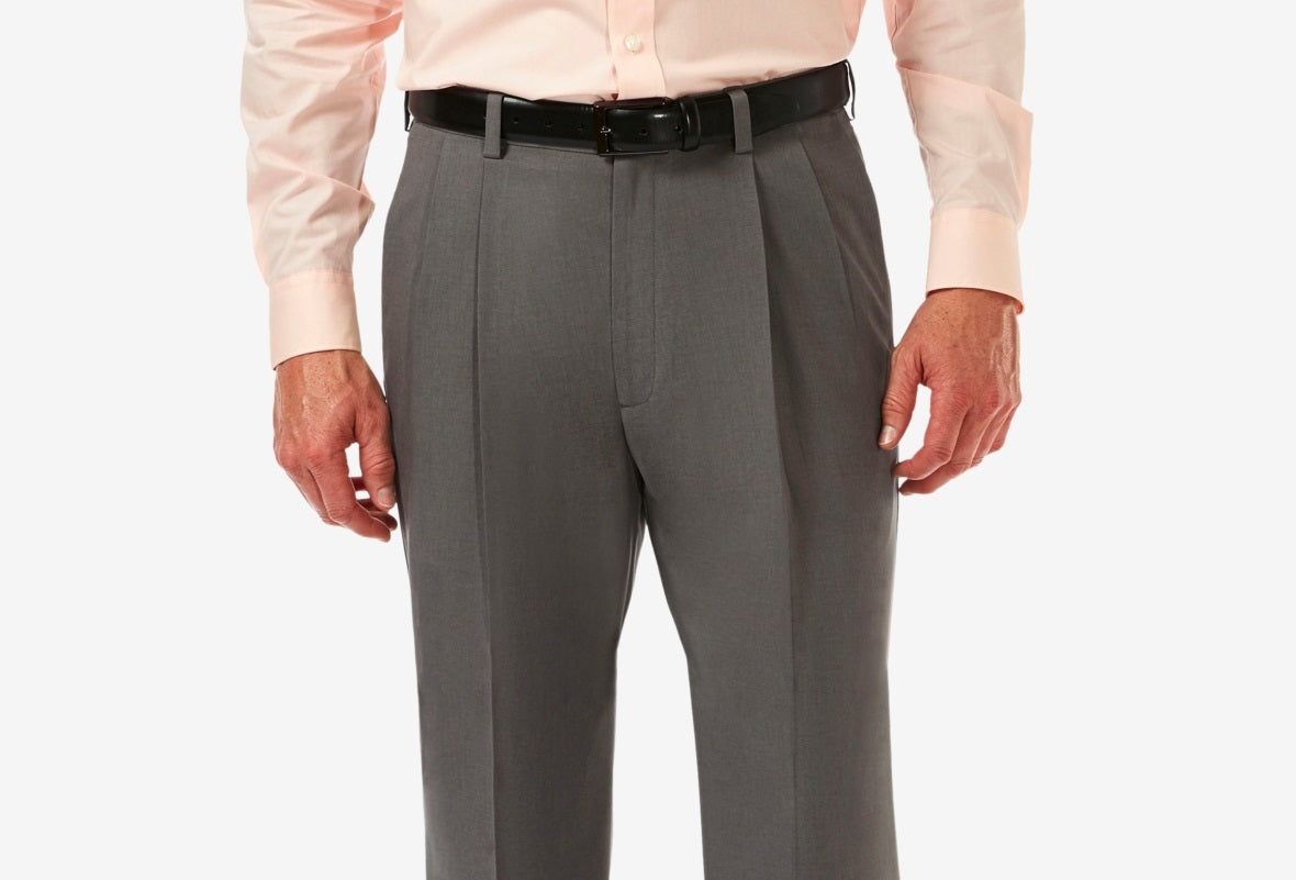 Haggar Men's Cool 18 Pro Classic Fit Expandable Waist Pleated Stretch Dress Pants Gray Size 42X29