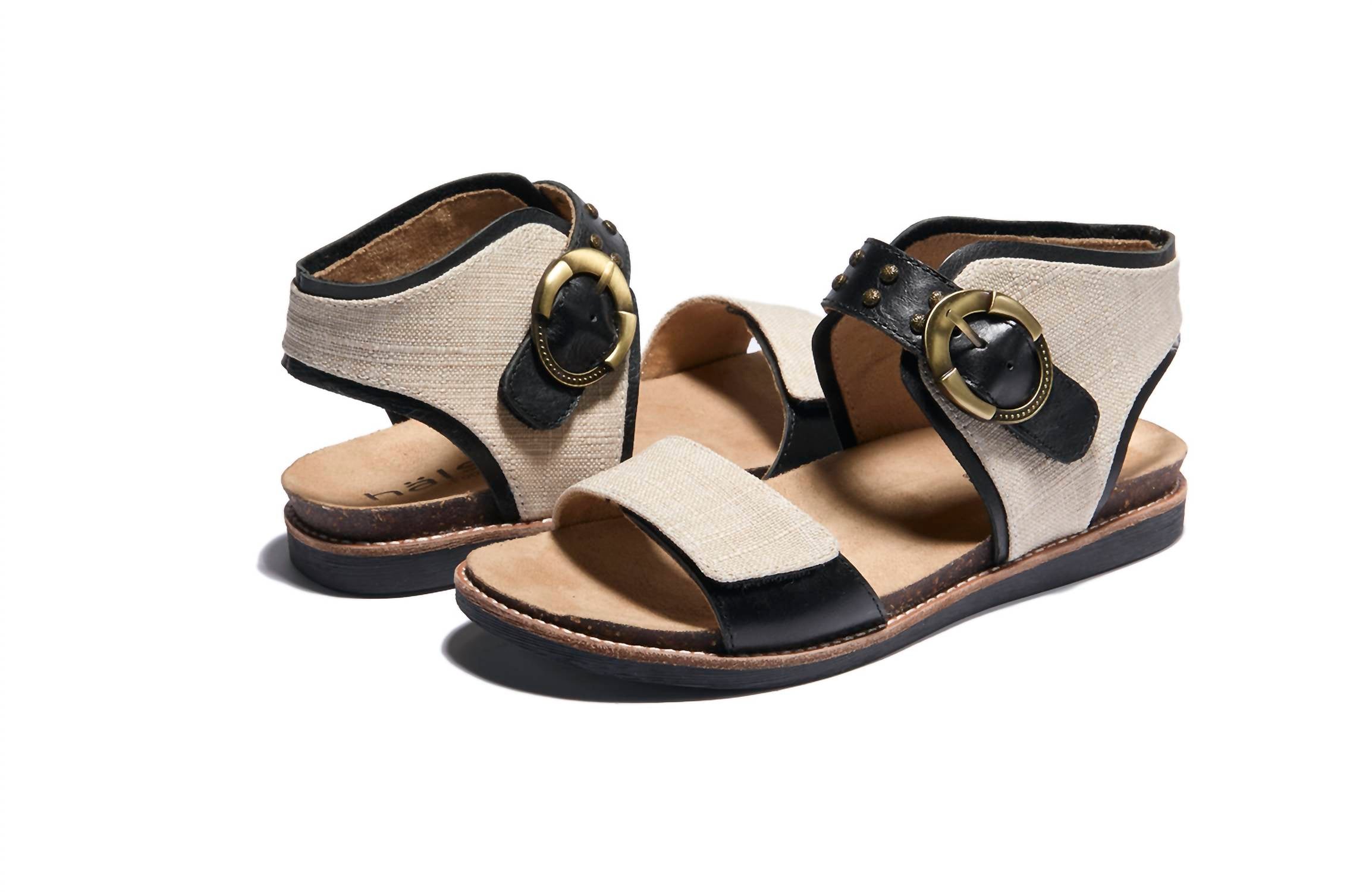 This sandal will take you from brunch to dinner and everything in between. Step into summer with the Women's Bari Sandal by Halsa Footwear, a perfect blend of leather and linen for that boho chic vibe. This sandal features an adjustable ankle strap with buckle closure and a comfortable cork footbed for all-day wear. Complete with a leather and textile upper, leather lining, and rubber sole, it's designed with antimicrobial technology to ensure fresh and dry comfort. Slip into imported style and elevate your vacation looks with this round toe and flat heel design in classic black and natural tones.