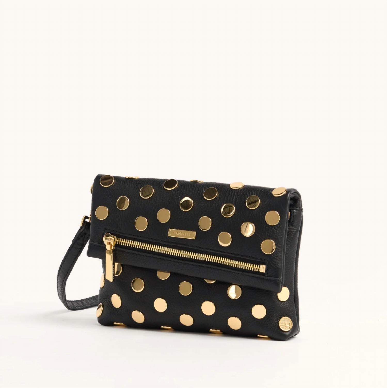 Discover the VIP Small Handbag by Hammitt, a chic and versatile accessory crafted with buttery black leather and gold hardware. This Premiere Collection piece easily transforms from a clutch to a crossbody or shoulder bag, complete with a removable shoulder strap for ultimate flexibility. Dimensions: Bag measures 7.75" L x 1.25" W x 6" H, and the strap is 0.5" W x 48" L. Inside, you’ll find a credit card slot and an external cell phone pocket, both lined in a striking red.